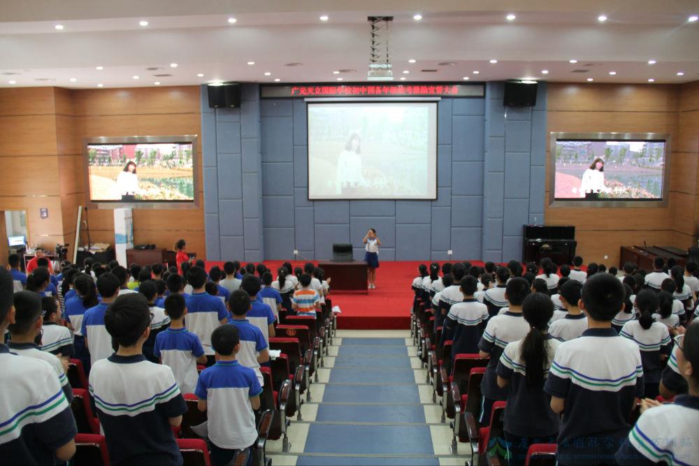 考试的号角即将吹响,胜利的旋律已在空中回荡。英雄弯弓,箭在弦上,乘风破浪会有时,直挂云帆济沧海。6月19日,广元天立国际学校预备年级统考激励宣誓大会隆重举行。校领导班子、预备年级全体教师共同为学生呐喊助威。下午四点十分,大会在优美的乐曲《天立之歌》中拉开序幕。