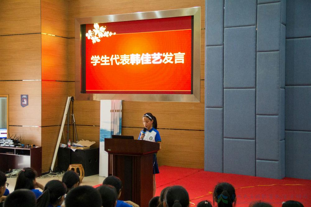 学生代表韩佳艺发表了热情洋溢的演讲。她带领同学回忆了难忘的同窗时光并发出:“为了理想绽放、为了人生辉煌而奋斗”的号召。