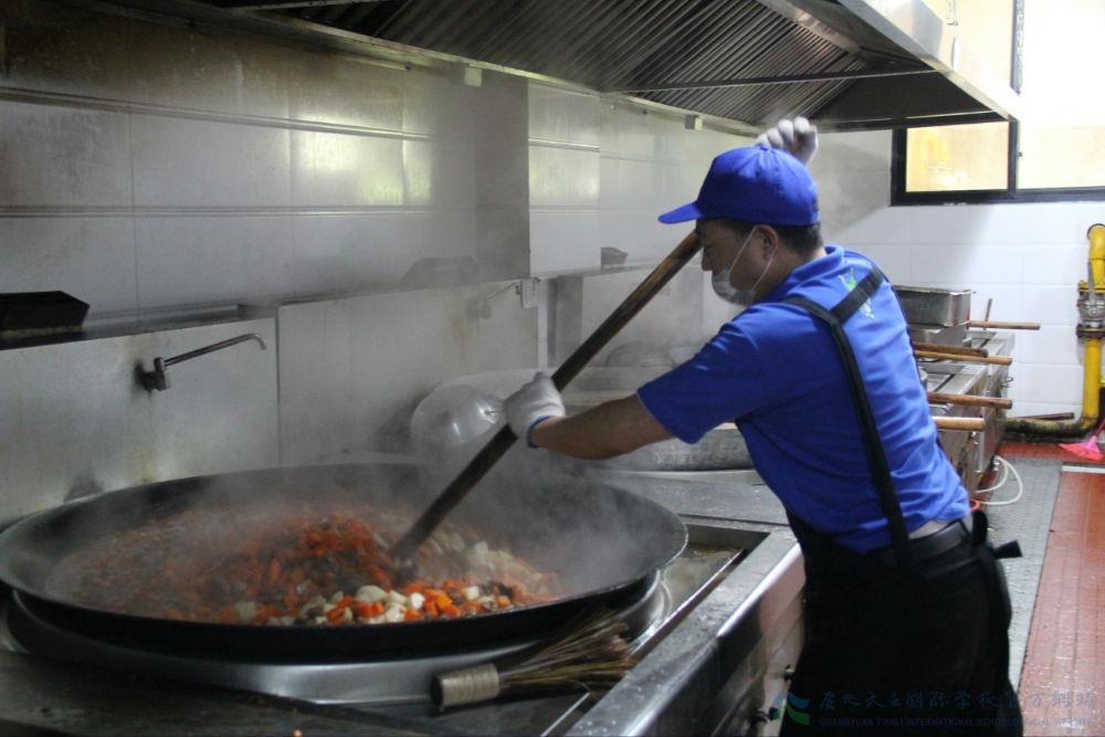 美食要注重火候,油的温度和厨师的翻转拿捏要恰到好处。各种鲜肉在油温中翻滚完成了由生到熟的华丽转身,提供给孩子们每日学习生活必须的热量。师傅们精心、悉心、倾心打造的视觉和味觉倶佳的美食,是他们送给同学们最好的体贴与关爱。