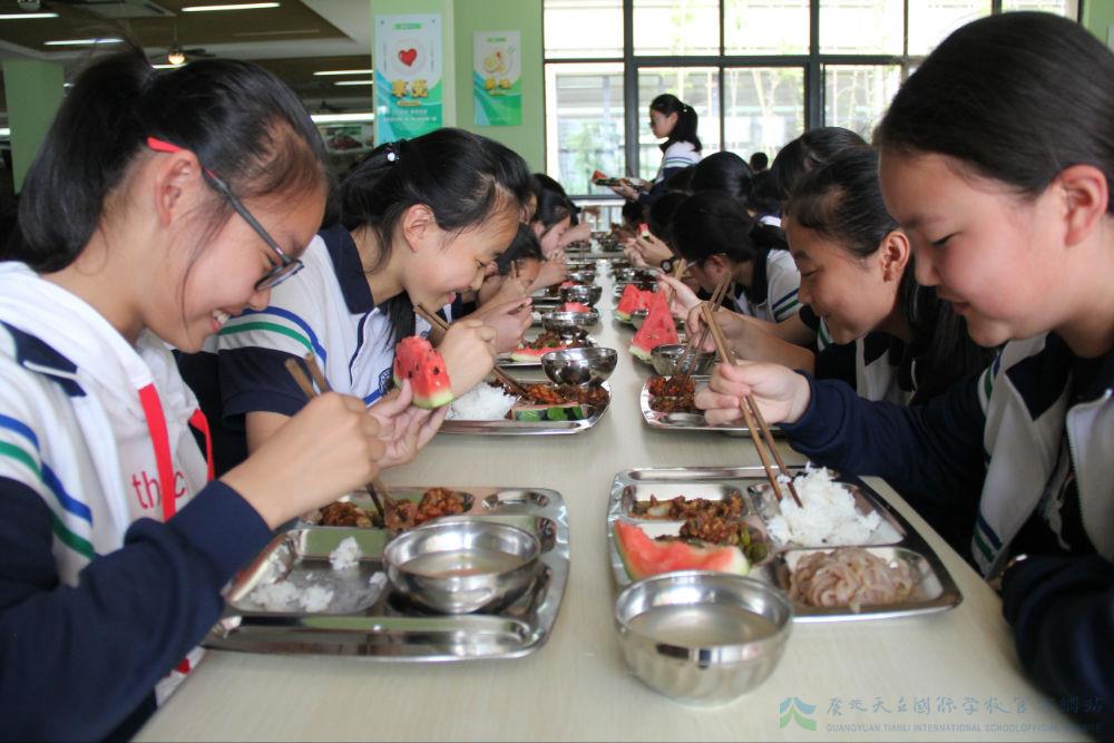 “民以食为天,食以安为先”、“把每一个学生都当成自家的孩子”、“一切为了学生的健康成长”……作为寄宿制学校的广元天立,深谙“孩儿离家母担忧”这一中国人最朴素、最本真、最基本的生命自然性诉求,更深刻体悟到安全、可口、营养、卫生的食物带给师生的不仅仅是舌尖上的愉悦享受,还应有人类的勤劳和大自然的馈赠带给我们的生态学意义上的教育哲学启示。让学生吃得健康、吃得开心、吃得营养、吃出好身体、吃出好状态、吃出好习惯、吃出好修养、吃出好人格,是天立的美食核心理念与服务价值追求。