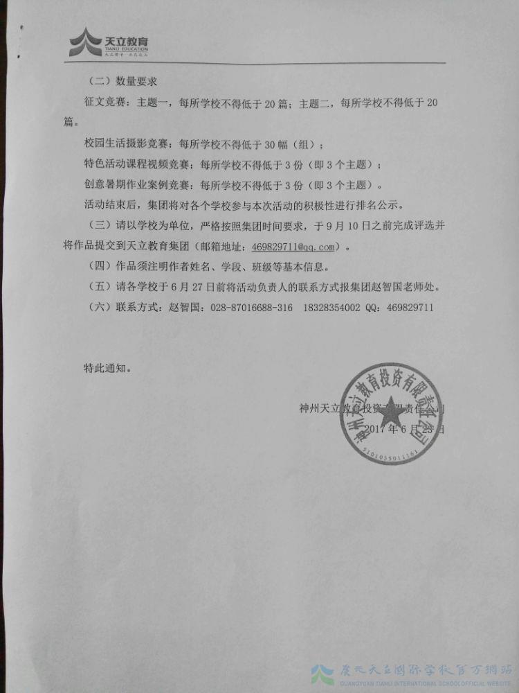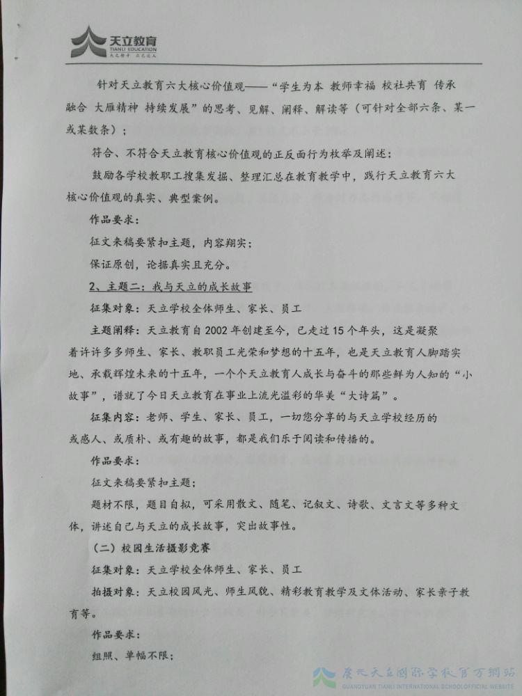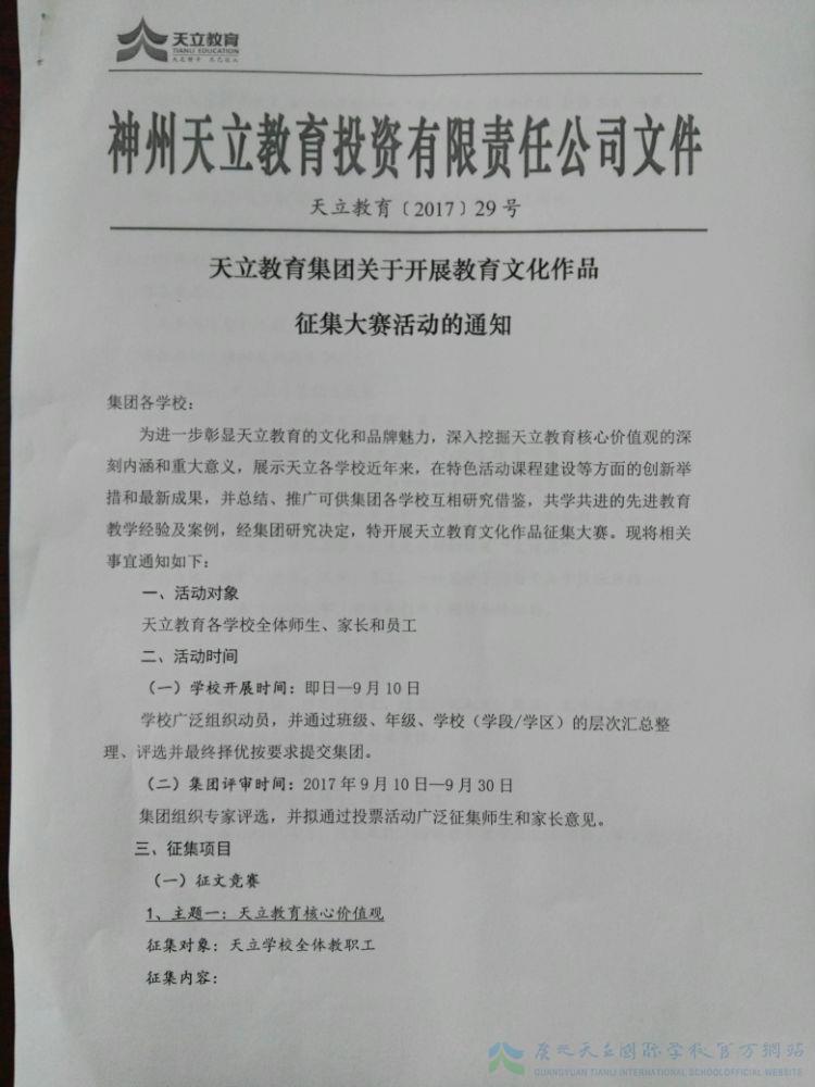 天立教育集团关于开展教育文化作品