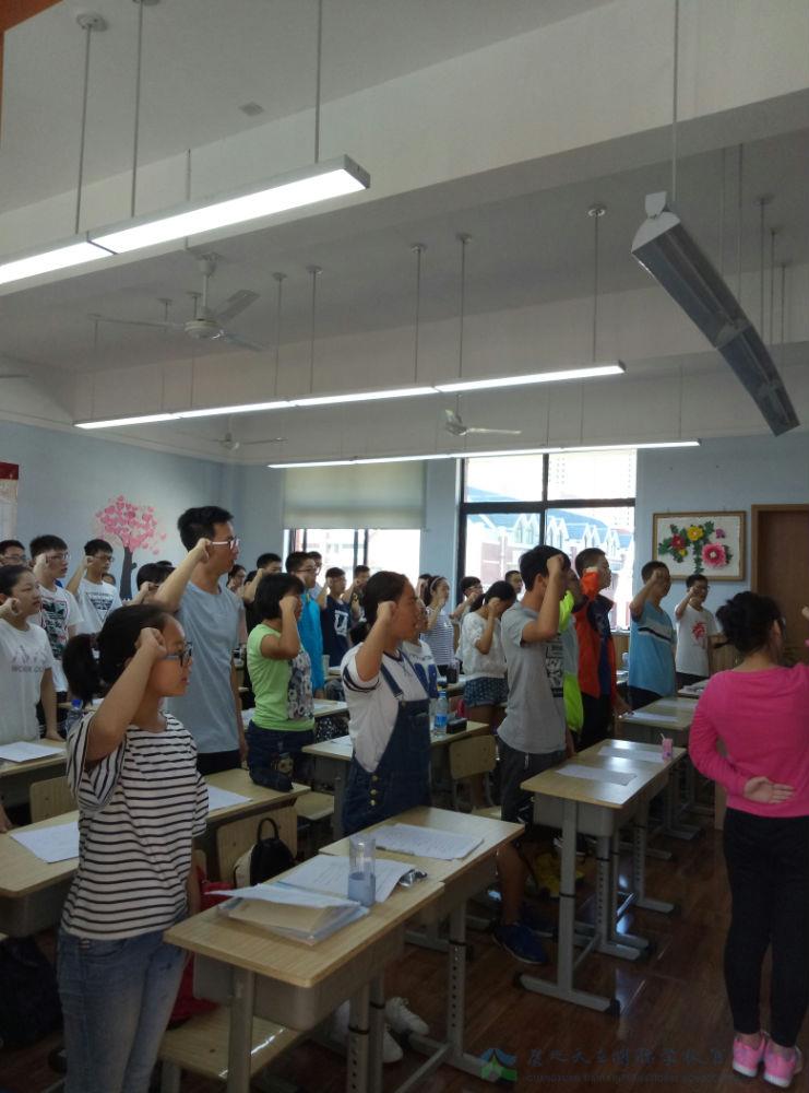 “我要做竞赛场上的百炼之钢,承载着七月的炎火,燃烧,燃烧,激昂,激昂,我身如铁,其志坚强,我身如翼,其力高张……”激情澎湃的晨训宣誓是高中竞赛班夏令营的清晨第一课,旨在通过铮铮誓言激发孩子们的学习热情,营造浓厚的学习氛围,为孩子们接下来一天的学习生活提供坚实的精神基础和充沛的激情保障。