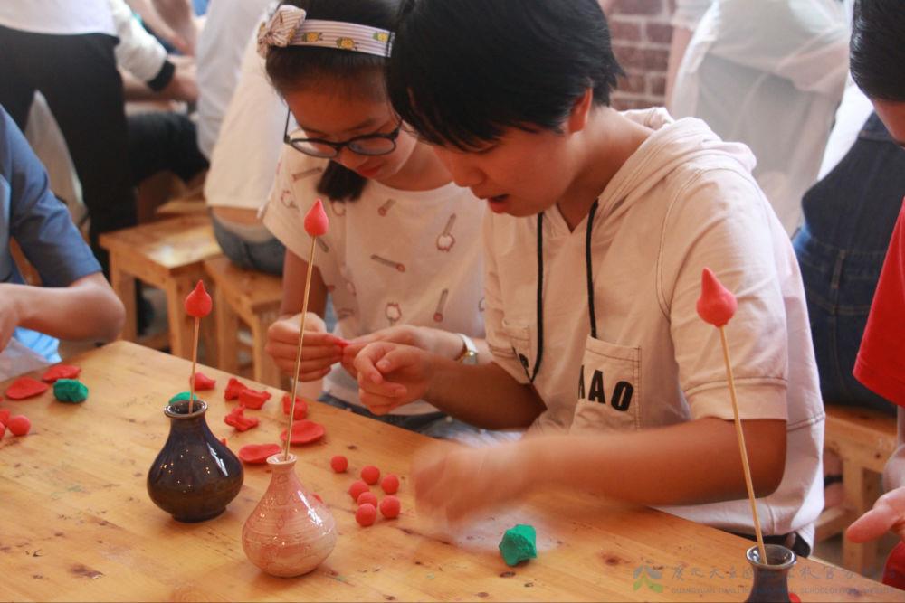 是日下午,我校专业陶艺教师唐国波为孩子们陶艺体验课程。在唐国波老师的演示下,一个个精美的陶艺作品映入了孩子们的眼帘,孩子们都为唐国波老师精湛的技艺喝彩点赞。在学生体验环节,唐国波老师亲自为孩子们选择了合适的陶泥,根据孩子心目中所设计的陶艺模型,耐心地指导他们并提出了修正意见。通过孩子们的亲自操作,葫芦、花瓶、茶杯、碗……也都一一呈现。唐国波老师还承诺他们,后期将会把这些陶艺作品全都烧制出来,作为见面礼物送给他们。