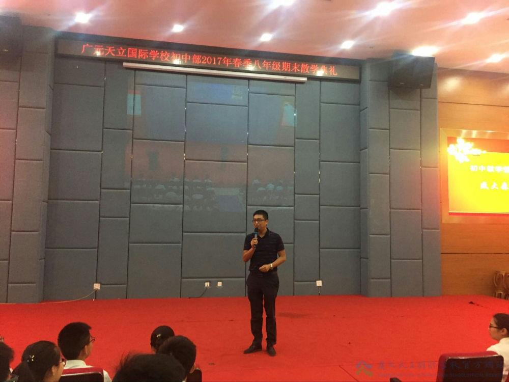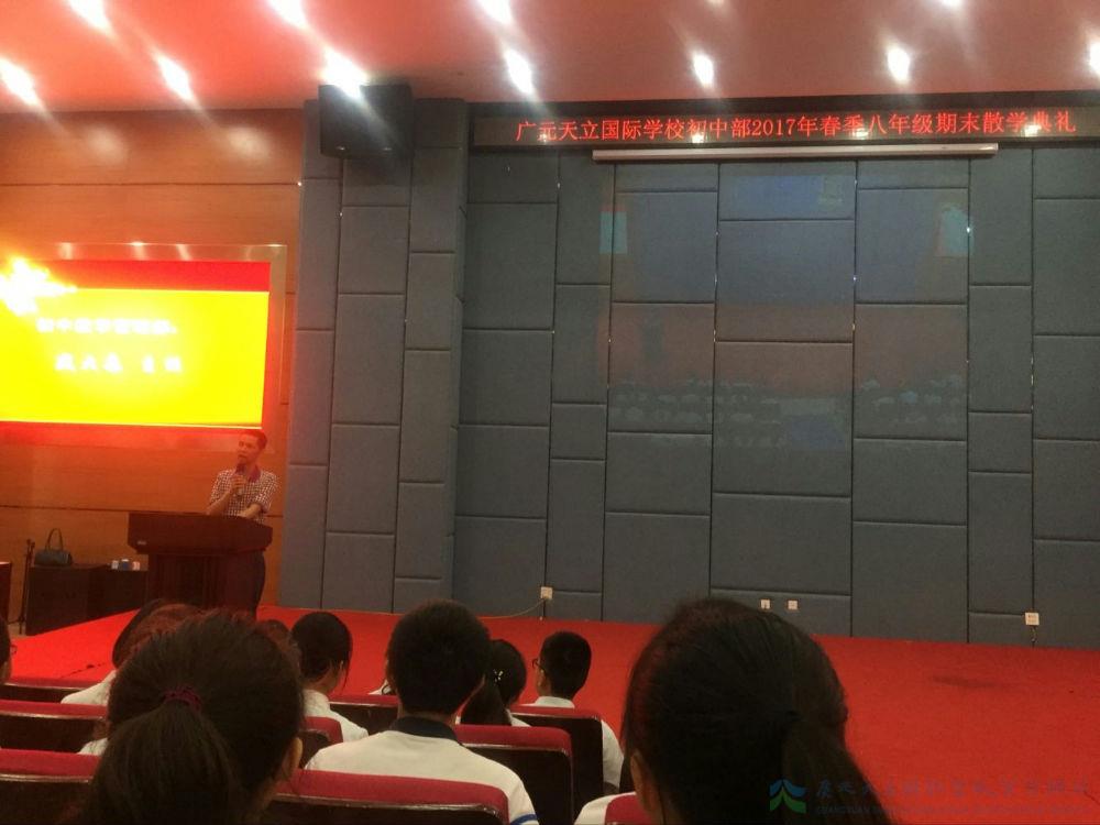 7月11日上午,2017年春八年级散学典礼暨期末总结表彰大会在学术厅隆重举行,初中部胡柏林校长莅临现场,初二年级全体师生及学生家长参加了本次活动。