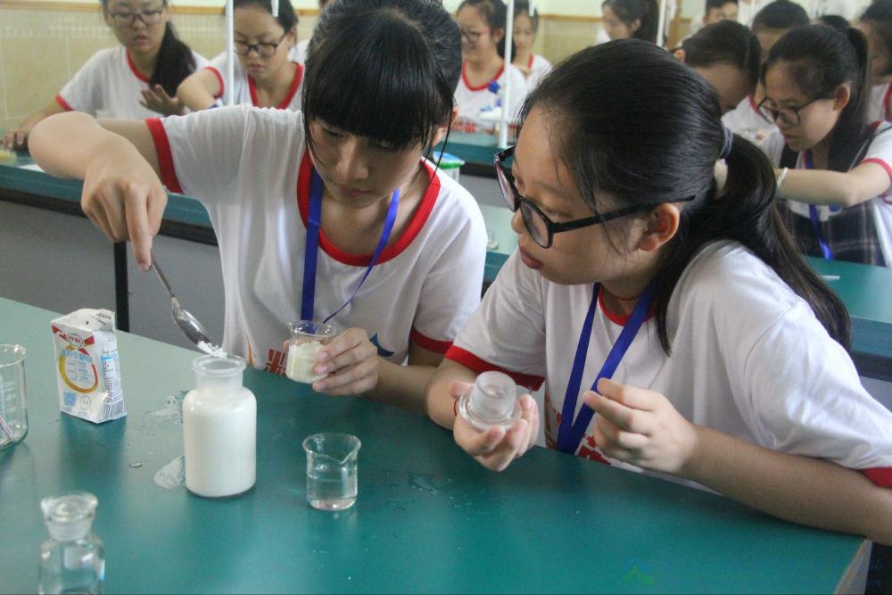 最让新学员们兴奋的当属生物实验课了。原江油一中生物教研组组长冯华兰老师为新学员们详细讲解了“酸奶的制作”过程和原理后,将学员们每4人分成一个小组,带进了生物实验室。通过其他几位生物老师的辛勤整理和精心准备,生物实验室的实验器材摆放有序、整齐划一,相比于大学校园里“高大上”的生物研究实验室也毫不逊色。冯华兰老师再次向新学员们强调了实验操作规范和实验室相关规定,希望他们能够按照实验步骤规范操作,爱惜实验仪式,爱护室内环境,做一名合格的生物实验员。