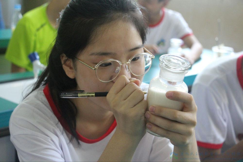 新学员们虽然心潮澎湃、激动不已,但是依旧能够遵守实验室相关规定,规范操作。在冯华兰老师的指导下,新学员们通过清洗实验仪器、消毒、配置牛奶比例……一系列步骤,都成功制作了一瓶属于自己的酸奶。冯老师说,实验结束后,同学们可以根据自己喜欢的口味,适当放入白糖调味,并在酸奶瓶上贴上属于自己小组的标签,然后统一放在冰箱中冷冻,待发酵结束后,同学们便可以亲口品尝到自己制作的酸奶了。