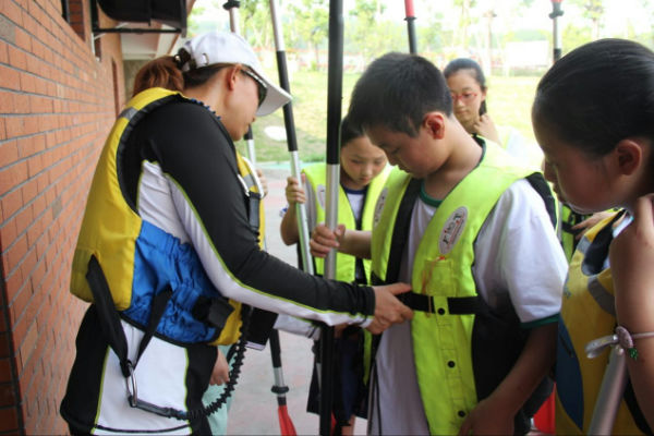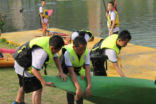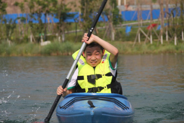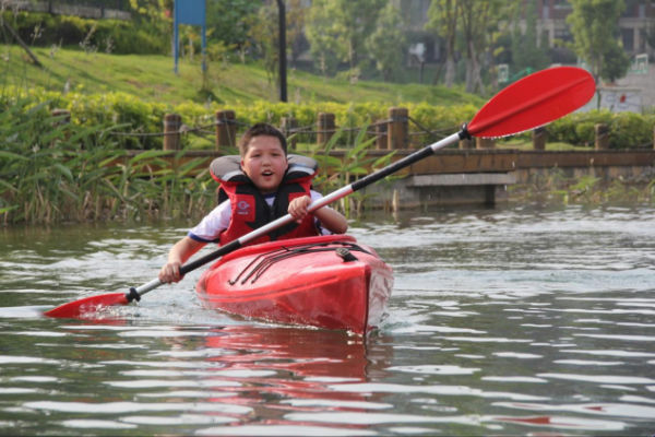 忘却烈日与功课带来的烦恼,孩子们最为期待的皮划艇课终于到来了。今天一营的小营员们幸运地获得了第一个体验的机会。孩子们迫不及待地想要去天鉴湖里玩耍一番了。不过王玉微老师为了孩子们的安全着想,认真仔细地讲解皮划艇注意事项,确保每个孩子都谨记于心后才让孩子们下水。虽然烈日炎炎,却完全无法打消孩子们欢快的心情,瞧,那个小家伙还在湖心唱起了歌!在王玉微老师专业耐心的教学下,小营员们学会了舟艇控制技术,水中翻艇自救,岸上单、双人清理舟艇,着救生衣游泳等等。除了皮划艇项目以外,小营员们按照自己的兴趣爱好各自选择了适合自己的文体项目,从中感受到了无与伦比的快乐。