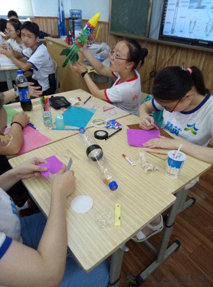 水火箭又称气压式喷水火箭、水推进火箭,是利用废弃的饮料瓶,根据初中动力学原理制作成集动力舱、箭体、箭头、尾翼于一体的玩具,同时也是寓教于乐、科技含量高、深受广大青少年喜爱的动手、动脑的科普教材。通过引导学生制作水火箭,教师不仅可以培养学生对于物理学习的兴趣,还可以提高学生们的动手操作能力,让学生直观了解导弹及运载火箭的发射升空和回收的过程。同时该实验还解释牛顿第一、第二、第三定律(惯性、能量守恒定律、作用与反作用),让同学们了解一些基本的空气动力学和飞行力学等方面知识。