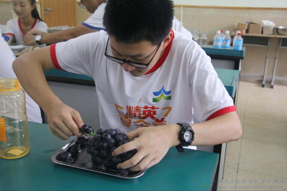 同学们通过前几次的生物实验课,已经明白了实验室的相关规定,也对生物实验有了一定的认识和了解。在实验操作中,他们都严格按照老师的要求进行规范操作。在他们榨汁结束之后,小组长分别将葡萄汁上交到冯华兰老师处统一密封保管。据了解,发酵过程是一个漫长的过程,一般是在十天左右,并且温度要适宜。在发酵过程中,每隔12小时还需要将瓶盖拧松一次,以放出瓶中的二氧化碳气体。