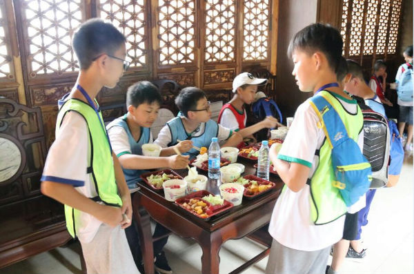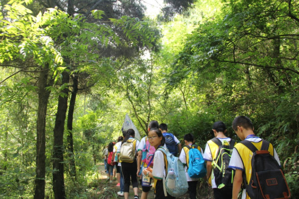 上午10点左右,营员们进行活动下一项——重走古蜀道。时值夏日,而在古蜀道参天的百年老树的荫庇下,却一点感觉不到炎热。时有清风穿林而过,为营员们带来一丝清凉,小营员们三两成群,互帮互助,很快便到达了顶峰,从高庙铺返回大朝驿站就餐,结束了上午的行程。