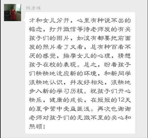 慈母手中线,游子身上衣。临行密密缝,意恐迟迟归。父母对儿女的爱永远是温暖、纯洁、无私的。随着时间的变迁,父母表达爱的方式也开始变得丰富起来,为了让孩子成长成才,爸爸妈妈们一直都在不停地探索,也在不停地选择。昔孟母,择邻处,只为孟轲能有更好的学习环境!与孟母一样,广元、汉中、陇南等地的爸爸妈妈们,为了能让孩子接受更好的教育,享受良好的学习环境,尽管难以接受不能每天陪在孩子身边的事实,但最终还是选择了拥有优质教育的广元天立国际学校!可能开始的时候有过对孩子的担忧,有过对学校对老师的质疑,然而在短短几天夏令营的时间里,不轮是孩子还是家长,都对这所年轻的学校青睐有加,更多的是充满希望和感
