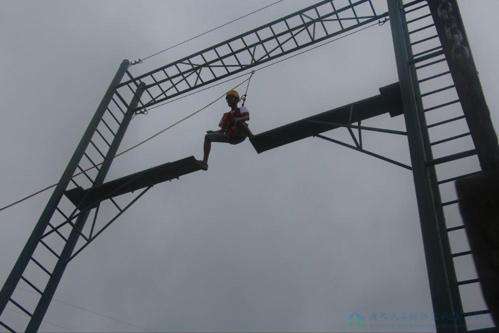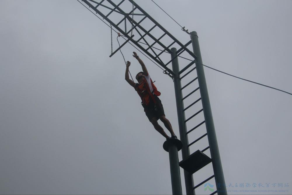 曾家山的工字五面体是一个高空运动项目,在赶往场地的途中仿佛走入了黄庭坚的词句“我欲穿花寻路,直入海云深处,浩气展虹霓!”。这是一块高地,如果是欣赏风景,那么心头多少会浮现出美丽的诗句。而此时,学子们要挑战的不仅仅是自己的潜能,更有临危不惧,居高自若的心态。“高度”对于大多数人来说都有不同程度的恐惧,而真正的勇者是独立不惧的。正如庄子所说:“夫至人者,上窥青天,下潜黄泉,挥斥八极,神气不变”也只要这样的“至人”才能“登高山,履危石,临百仞之渊”而依旧百步穿杨,箭无虚发。在高考场上,人生路上,人往往在最关键,最重要的高处一败涂地。所以此次户外拓展选择了这个高空项目,锤炼学子之心。