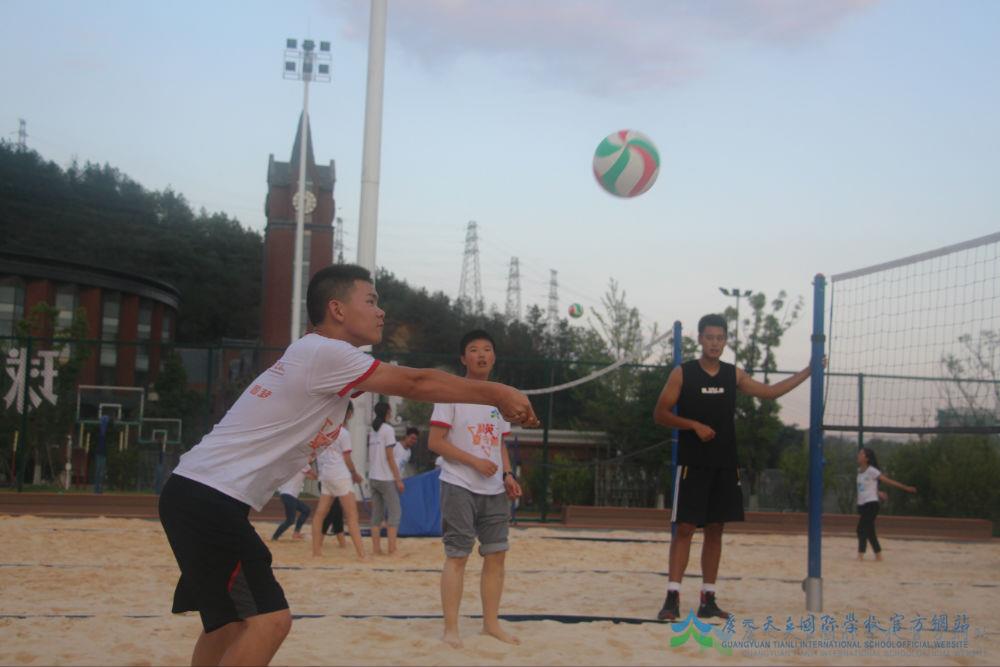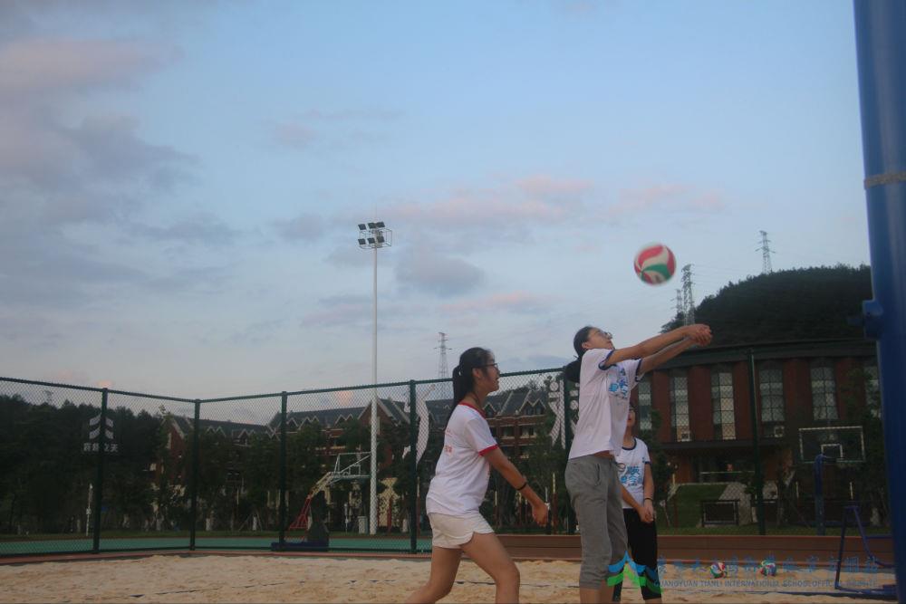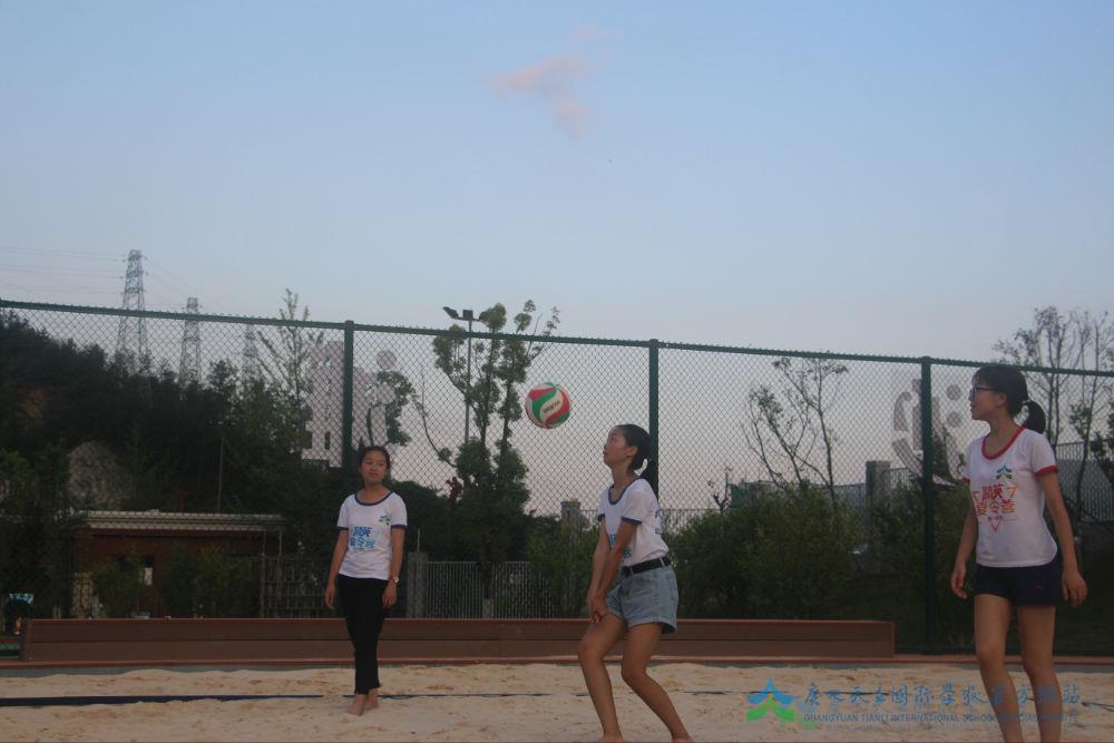 一汪湖水倒映着蓝天,一抹阳光照耀着沙滩。沙滩排球是广元天立的特色项目,也是学生的常规性课程。两米零二的王巍老师每天在沙滩上等候着他的学员们,魁梧的身躯总是面带微笑,每一个动作都是极尽精微的指点。所以尽管烈日炎炎,营员们还是十分喜欢王老师的排球课。据悉,广元天立国际学校将承办2018年四川省省运会沙滩排球比赛。代表广元市参加省运会室内排球和沙滩排球的运动队员已于去年秋季入读广元天立,开始正常的排球训练和文化课学习。所以,营员们在体验沙滩排球魅力的同时,也在期待着明年的排球盛宴。