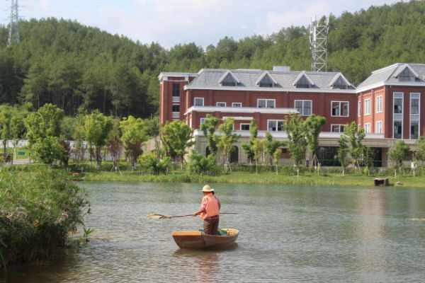微风习习,湖光潋滟,天高云阔,这是一所湖光山色的校园