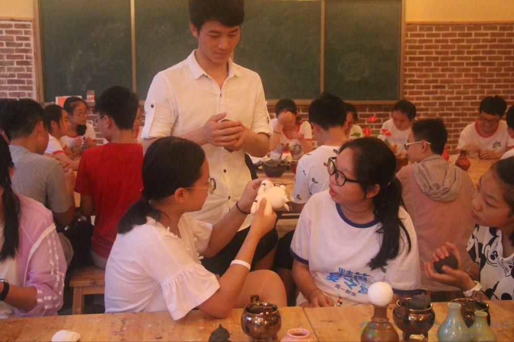 “白如玉,明如镜,薄如纸,声如磬”、“雨过天青云破处,这般颜色做将来”。从陶器时代到兵马俑再到唐三彩,陶瓷工艺在中国源远流长,而陶瓷艺术又常常把书法绘画融合在一起,把艺术的魅力表现的淋漓精致。随着西方文艺浪潮的冲击,现代陶艺也从生活环境中突颖而出。在近几年的发展过程中,有关教育部门从素质教育出发,也把陶艺列入了教学课程。做为引领教育之风的天立也早早的开设了陶艺课程。从陶器瓷器到花物塑形,唐国波老师总能让营员们看到不一样的泥土魅力。每一次创作,都在为自己的作品踌躇满志。然后,再从别人的作品中,寻找快乐,寻找惊叹,满是新奇,满是收获。
