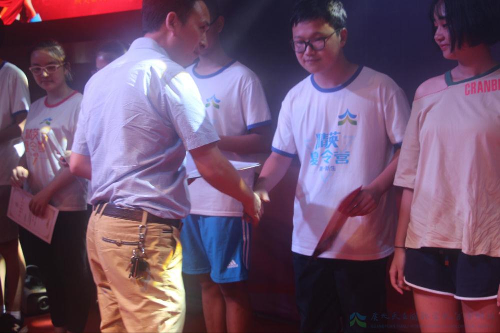 这个七月,我们收获了很多,得到了很多。这个七月,我们有过酸甜苦辣在这个人才济济的天立精英夏令营他们勤学苦读,他们阳光自信,他们积极向上。今天我们要给这些同学们颁发荣誉,让我们掌声请出这些优秀的营员们。 颁奖嘉宾黄永贵总校长、江晓音副校长