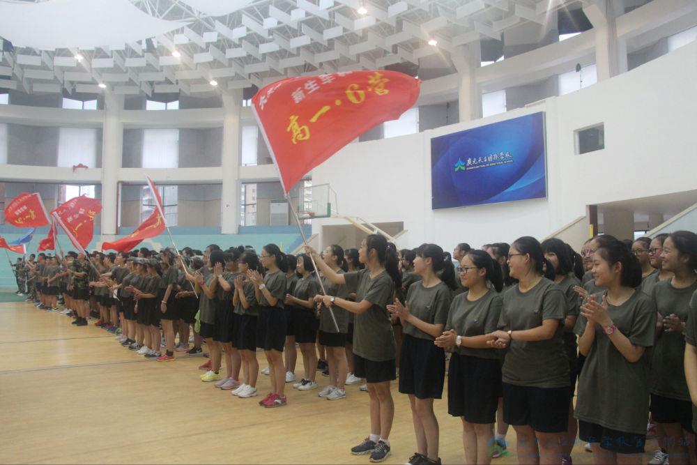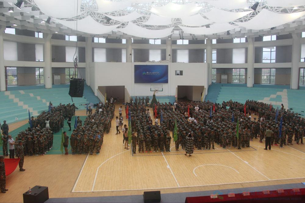 8月21日上午,因大雨忽至,原计划在9点举行的中学部新生军政训练开营仪式延迟至10点,于室内体育馆隆重举行。学校总校长黄永贵先生,副校长韩顶清老师,高中部范玉钦校长、张美东副校长,初中部胡柏林校长、李才副校长及国防教育团长出席了本次大会,开营仪式在兰老师的主持下,最终圆满落幕。