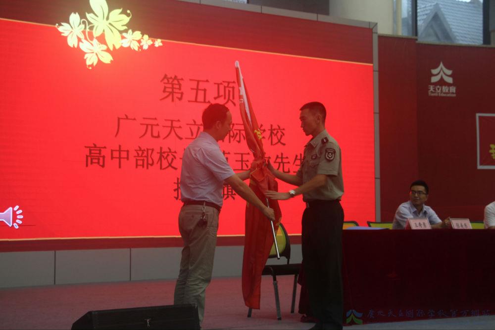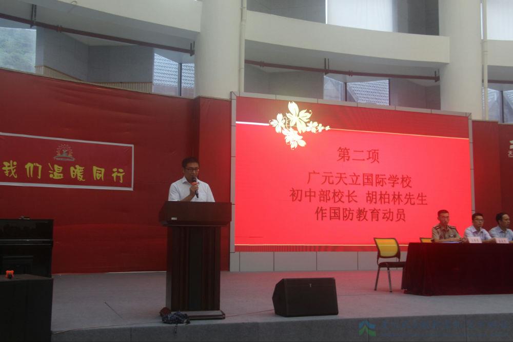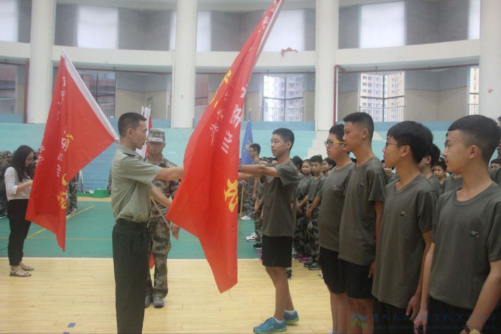 国歌唱响,旗帜飞扬。不求征战沙场,但为祖国荣光,既为华夏儿女,必当用毕生之追求以筑中国之期望。升旗仪式之后,初中部胡柏林校长代表学校作军事素质培训动员讲话。从建军之初,到悠悠今日,九十载风雨兼程,数不尽辛酸血泪;自开校以来,至当下立足,三年里摸索奋进,道不完苦辣酸甜。既为天之骄子,理应志在四方,从此肩挑大旗,把娇气封存于过去的履历,用炽热青春去鲜艳火红的军旗。