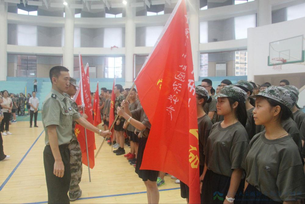 钢铁意志,不甘平庸。国歌,总有一回道不明的感动包含于内;红旗,总有一种理不清的情愫孕育其中。当团长从范校长手中接过团旗,再将营旗授予各营时,那份沉甸甸的使命便也依次有了传递。风掣红旗,抚慰过的是每一颗赤诚爱国的内心,撼不动的是每一位天立英豪的坚定。这样的训练,注定严格,难免苦累,但教官的口传身教,老师的亲切宽慰,同伴的携手并进,让参训的他们已然没了退缩的理由,这是参训学员代表发自肺腑的誓言。