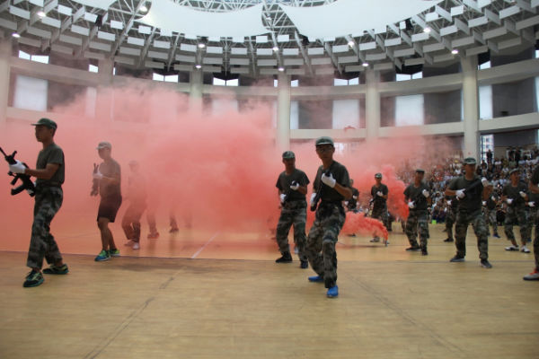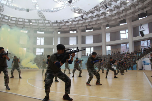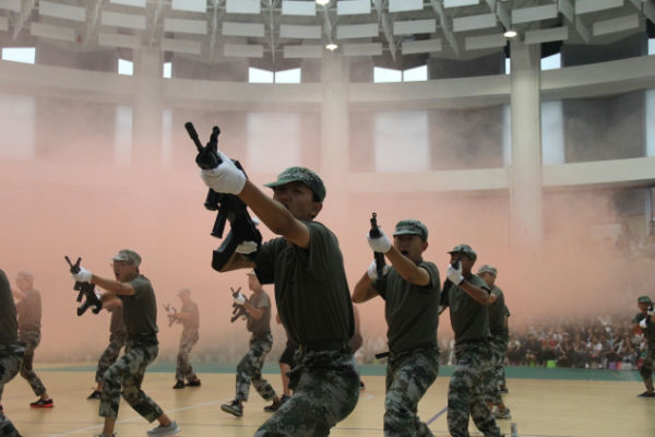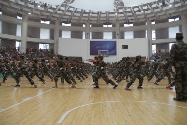 8月29号上午,广元天立国际学校隆重举行了2017年秋新生国防教育汇报表演暨表彰大会。屋外雨疏风骤,室内热火朝天。伴随着激昂的国歌、战士们铿锵有力的脚步声,国防教育汇报表演正式开始。