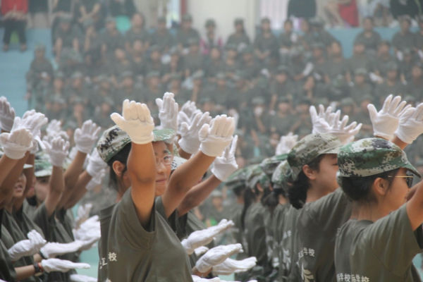 刺枪小分队、叠军被方队、女子军体拳方队、特殊作战小队、男子军体拳方队、手语操方队……或威武、或霸气、或柔中带刚的方队表演一个接连一个,目不暇接。在我们每个方队精彩纷呈的表演背后,是十天里不断的操练,不断的打磨。只为这一天这一刻的精彩演出,他们挥洒汗水,忍下苦痛,咬牙坚持,用热血书写青春,用汗水浇灌梦想。