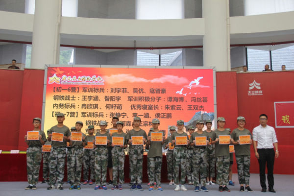 过硬的团队过硬的兵,军训中专注的神情、标准的动作、豆大的汗珠造就一名铁打的兵;嘹亮的口号、整齐的步伐、精准的合作凝练出一个钢铸的营!军训标兵、钢铁战士、军训积极分子、内务标兵、优秀寝室长,所有人都在为你们点赞!最后,军训团长王秀勇和本校总校长黄永贵先生分别发表的讲话,对学生的军训成果做出了极大的肯定,也对所有的孩子甚至家长朋友们道出了最诚挚祝福。十天的训练就这样结束了,但是在这十天里所铸造的钢铁一般的精神不会结束,这样的精神会支撑你永远地奋斗下去,让你的平凡变成优秀,让你的优秀成为卓越!加油吧,天立人!