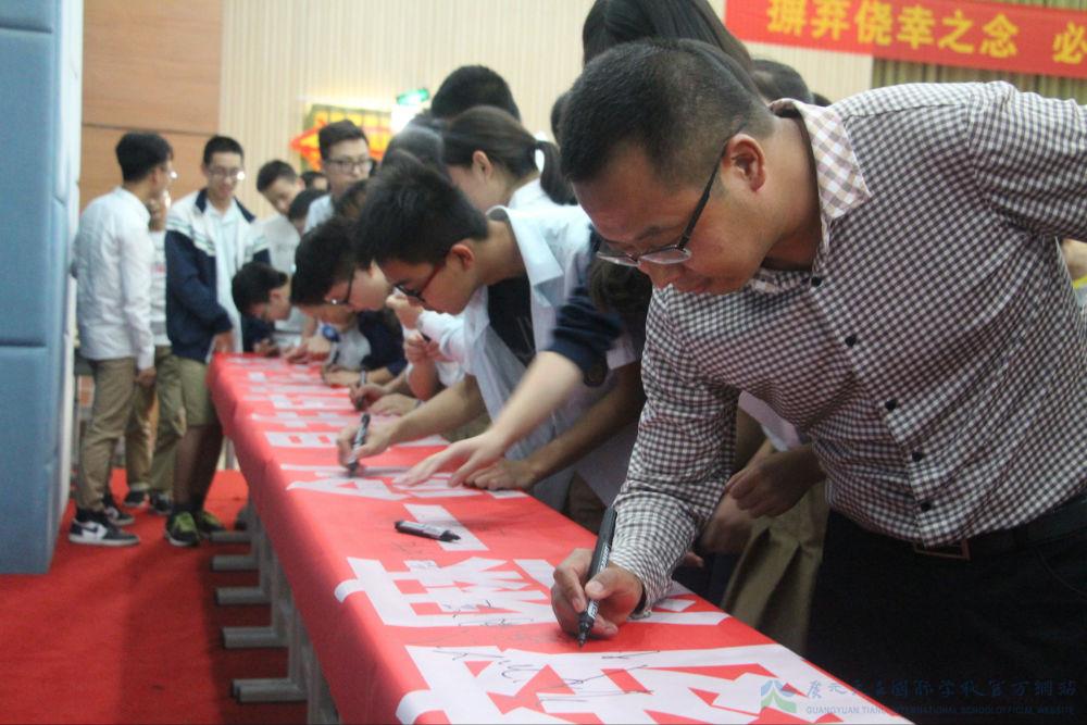 首届高三,目标不凡;“3691”,如初模样。凭着一贯的激情与信心,黄永贵总校长向在场师生、家长重申了我校首届高考目标。清华北大,全国名校,重点本科,全员升学……理想实现的背后注定艰辛,但唯有全力以赴,方能在梦想绽放时而喜笑颜开。黄校长保证全校各部门将为高三年级做最好服务,为目标的达成提供有力保障。