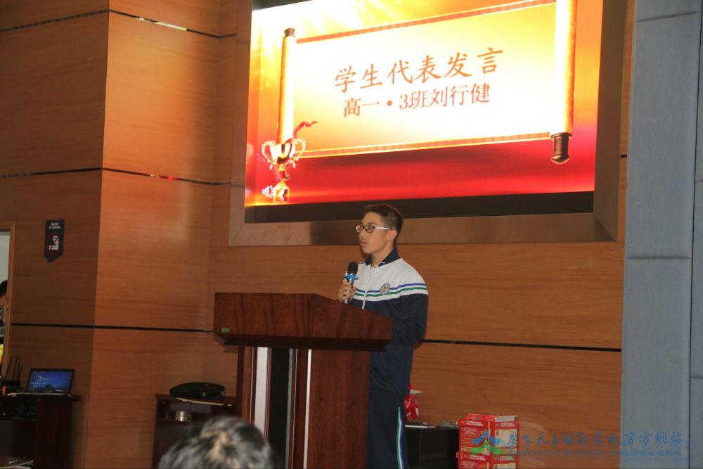 辽阔的草原期盼骏马的驰骋,高远的蓝天期盼翱翔的雄鹰;汹涌的巨浪期盼弄潮儿的搏击,辛苦的努力定会成就精彩的人生!掌声有请学生代表,高一三班的刘行健同学发言。