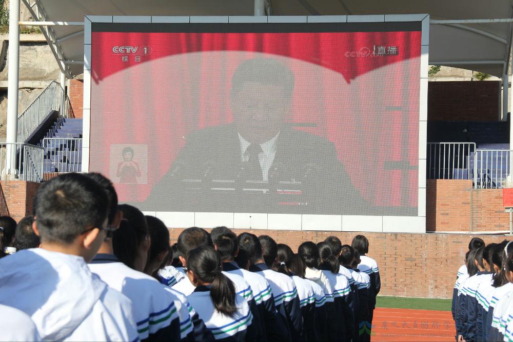 10月18日上午,我校近四千名师生员工在行政楼二楼会议室、大操场、教室、办公室、实验室等处观看十九大开幕会直播。看直播、听报告、学精神、谈体会成为校园热潮。