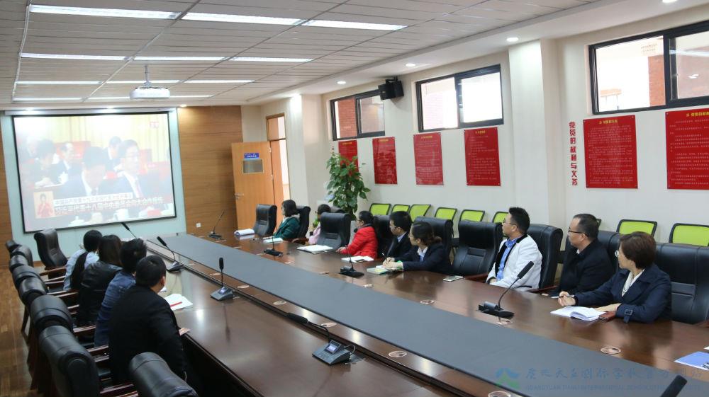 在行政楼二楼会议室,校党支部和各部门主要负责人集中观看了开幕会,并举行了学习十九大精神专题讨论。