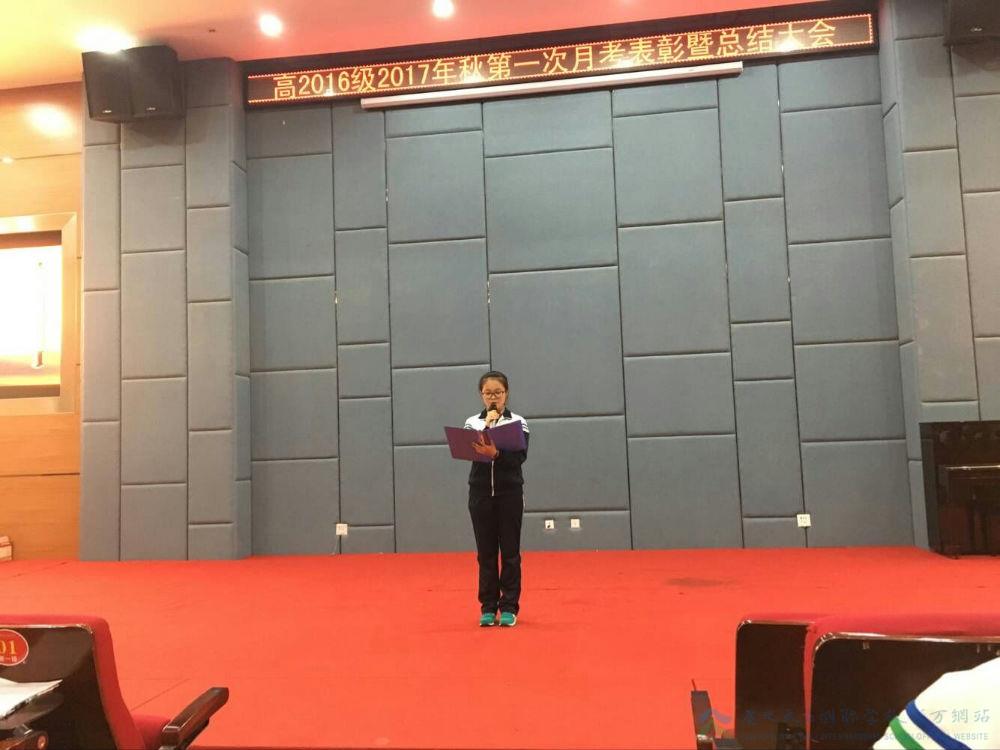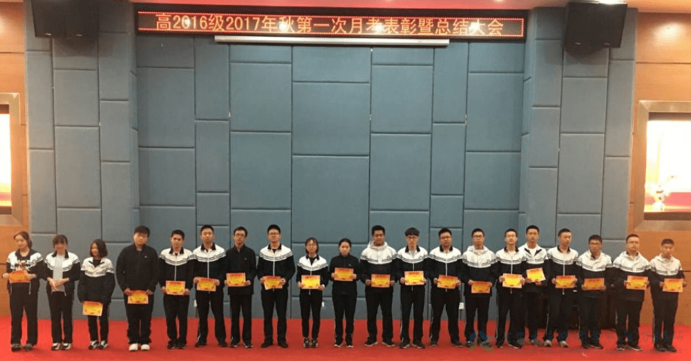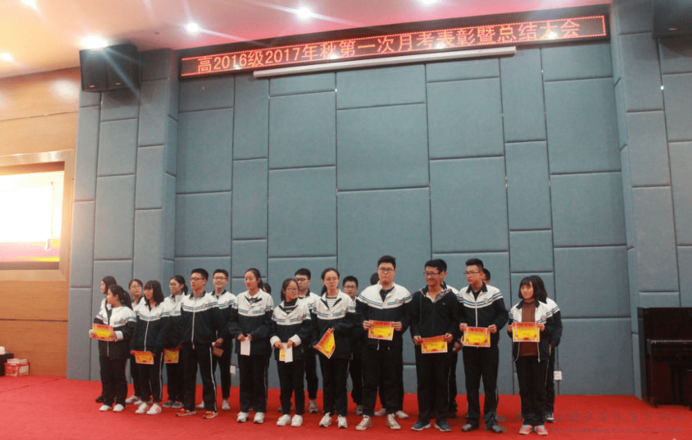 为表彰先进,激发学生学习斗志,10月19日晚,我校高二年级在学术报告厅隆重举行了第一次月考表彰暨总结大会。高二年级全体师生共300余人参加,大会由吴定坤和吴竺轩两位同学主持。