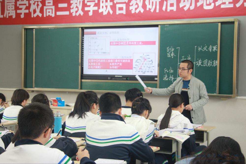 地大物博,理性而为。世界的博大,有待学者的不断探究;地理的奥秘,寄托学子的用心钻研。地理,堪称文科中的理科。它需要严密的逻辑,也需要理性的思维。今天的课堂中,三位老师便带着绝对的自信,彰显出与一般文科老师差异性的理性气质。前两位老师带着学生分别进入农业区位及工业区位的世界,回溯知识,夯实基础,并追求有效提升。我校李远成老师引导学生对交通运输区位因素进行了多方面的分析。从理论知识到现实案例,从课本挖掘到结论升华,他把西成高铁即将开通的既定事实搬进课堂,让同学们在身边事中理解了常见交通区位因素。李老师见多识广,所用范例信手拈来,孩子们在轻松地学习中重温了重要纲领。