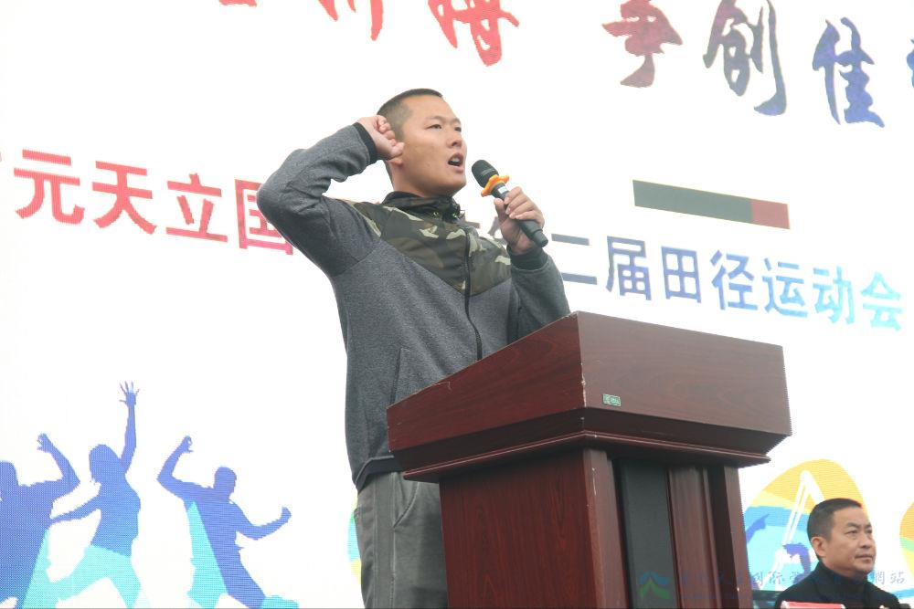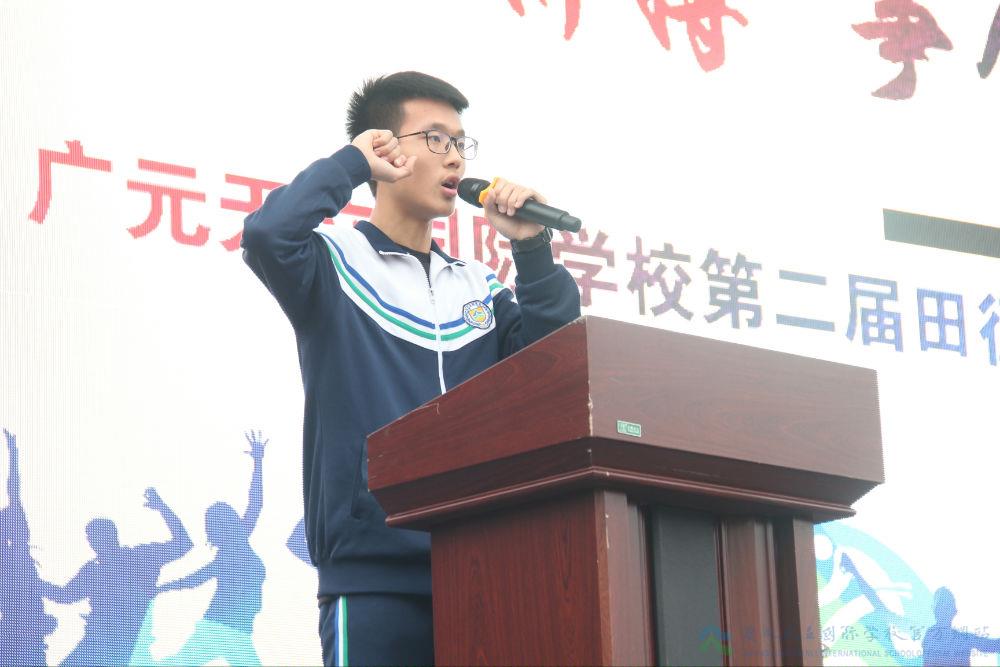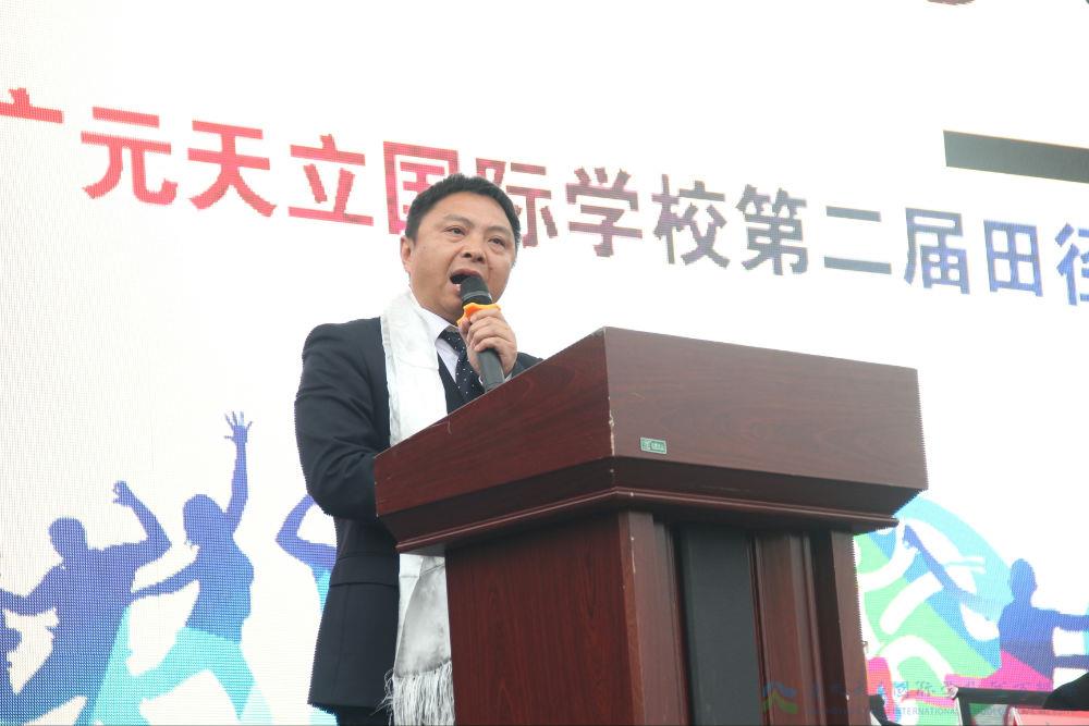 裁判员代表、运动员代表先后进行庄重的宣誓。广元天立国际学校总校长黄永贵热情激昂的为本届运动会致辞。他首先代表学校行政班子及本次运动会组委会,向到会的各位家长朋友表示热烈的欢迎;向运动会的如期举行表示热烈的祝贺;向筹备这次盛会的全体工作人员表示衷心的感谢;向参加运动会的全体运动员、教练员、裁判员表示诚挚的慰问。他说,体育工作是国民教育的一个重要组成部分,也是学校精神文明建设的重要内容。发展体育运动,增强人民体质,是中华民族屹立于世界民族之林的重要保证。对弘扬奥运精神,提升全校师生员工素质,推动学校各项工作开展,都有十分重要的意义。它既是强身健体,提高广大师生员工生活质量的需要,又是培养新世纪德、智、体、美全面发展的社会主义合格人才和全面建成小康社会的需要,也是驱动和促进学校改革发展、创新发展、内涵发展和可持续发展的需要。黄校长要求,在接下来的比赛中,全体参赛人员能以饱满的热情和昂扬的斗志,积极投身到各项竞赛活动中去。裁判员要严格竞赛规则,公平、公开、公正裁决。运动员要遵守纪律,服从裁判,充分发扬吃苦耐劳、顽强拼搏、重在参与和“友谊第一、比赛第二”的精神,做到“胜不骄,败不馁”,在运动场上比思想、比作风、比纪律、比技术,赛出风格、赛出友谊、赛出团结、赛出成绩,充分展现天立学子特有的精神风貌,取得竞赛成绩和精神文明双丰收,在学校特色发展、内涵发展、永续发展的扉页上写下你们辉煌的篇章。让我们共同努力,把本届运动会办成一届安全、文明、团结、奋进的大会。