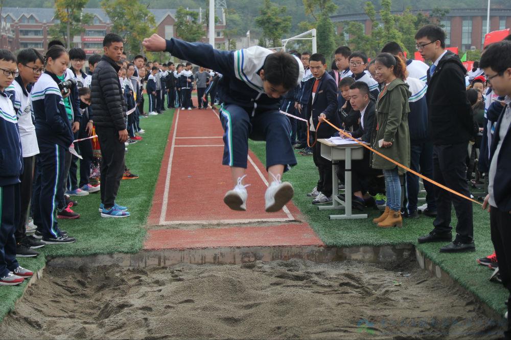 在跳远比赛中,选手们注意力高度集中,憋足了气,全力助跑,双脚蹬地,身体往沙池飞跃,像一只只矫健的雄鹰。