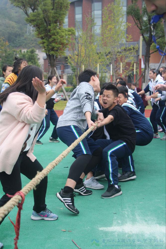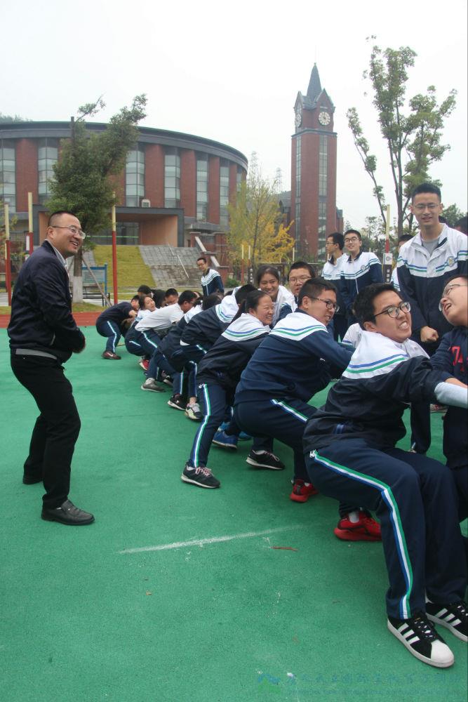 在20*50米及拔河比赛中,由小学、初中、高中及后勤组成的四支队伍分别比拼,映着场外高中学生的集体呼喊,老师们抛开往日的拘谨与严肃,尽把力量汇聚于奔跑和拔拽之中。经过激烈的角逐,高中部荣获接力赛第一名、拔河比赛第二名的殊荣。