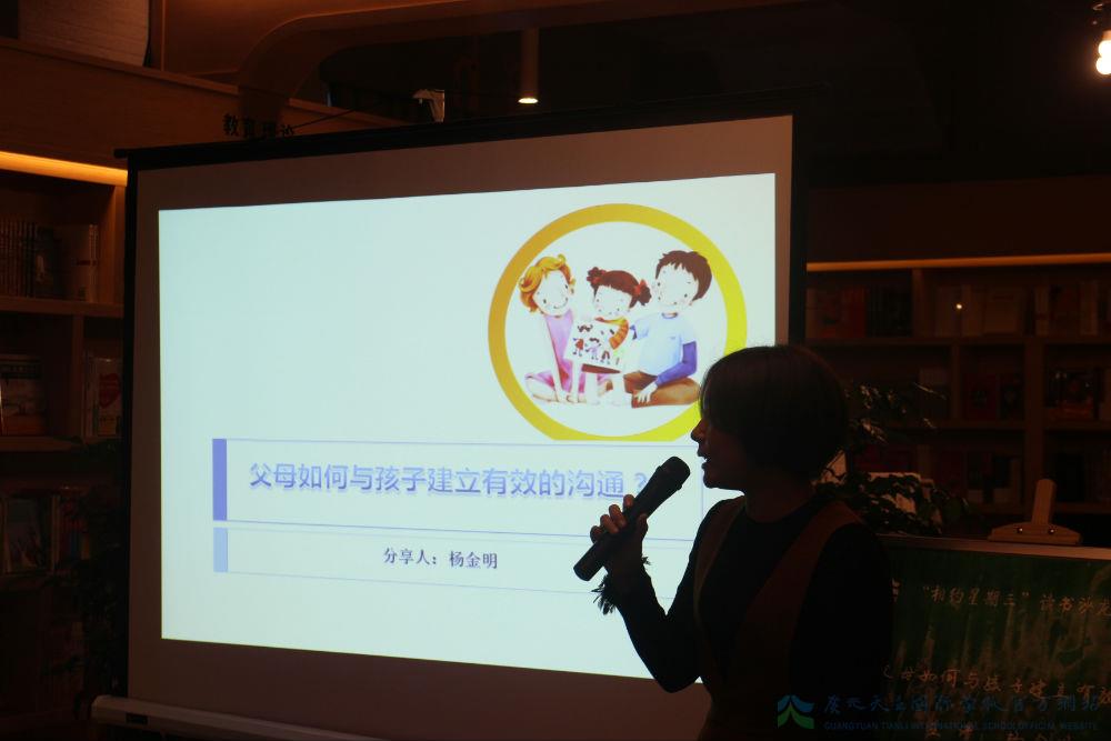 本期读书沙龙我们请来了杨金明女士跟大家分享《父母如何与孩子建立有效的沟通》,杨女士以母亲的身份现场亲述了作为一个母亲,如何在陪伴孩子成长过程中与小孩进行良性的沟通互动。