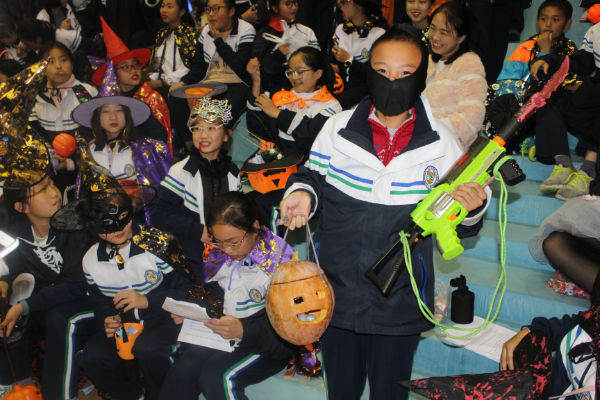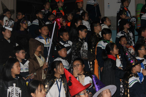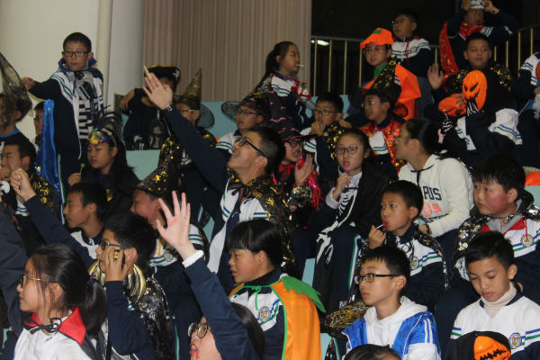 看!舞台上装扮成女巫和南瓜灯的孩子们,已经迫不及待地想要展示自己的英语话剧了。精彩有趣充满神秘色彩的万圣节英语话剧赢得台下同学的阵阵欢呼。