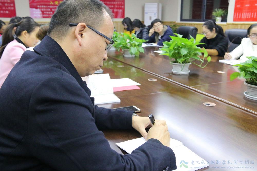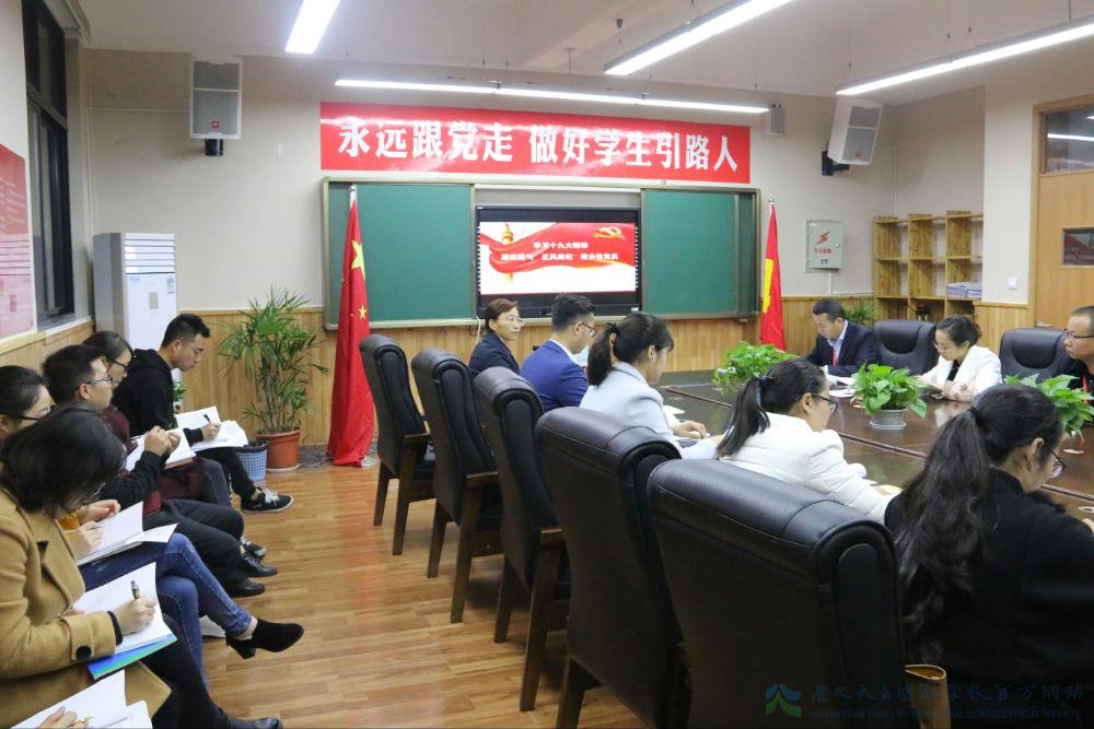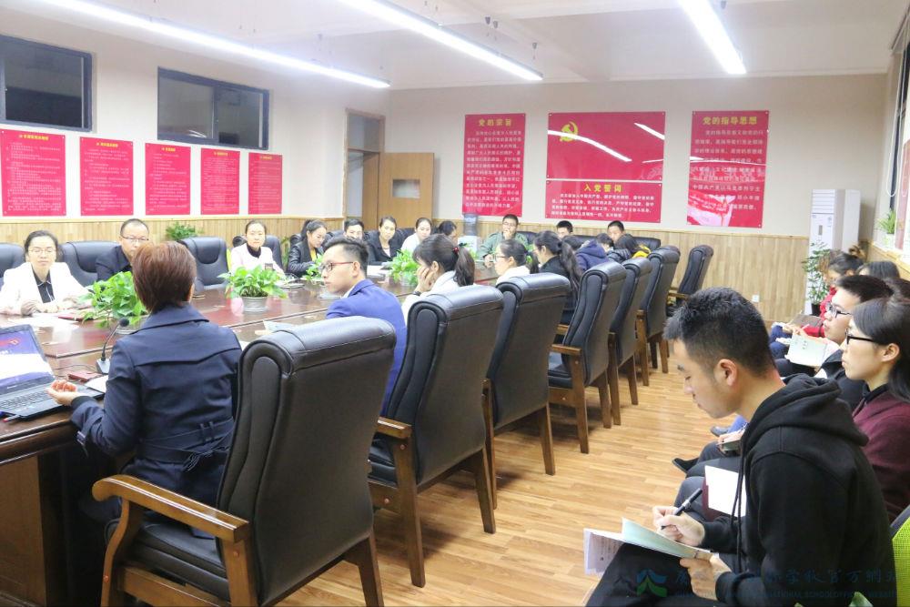 会上,薛书记就“十九大”中习总书记的报告进行了全方位解读,分别从其地位、意义、主题、逻辑结构及对教师本职工作的指导等方面予以深入探讨。