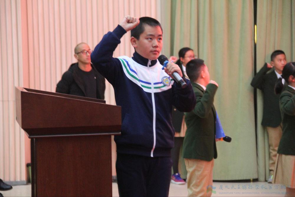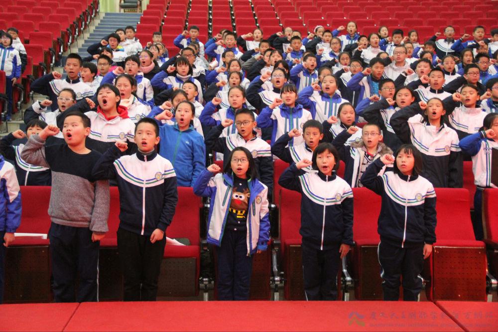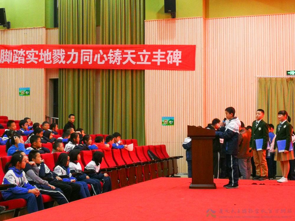 最后,预备年级全体学生用响亮的誓言表达出了自己努力学习的信心和斗志。嘹亮激越的呐喊,庄严凝重的神情感染了会场上的每一个人,经久不息的宣誓词响彻会场。