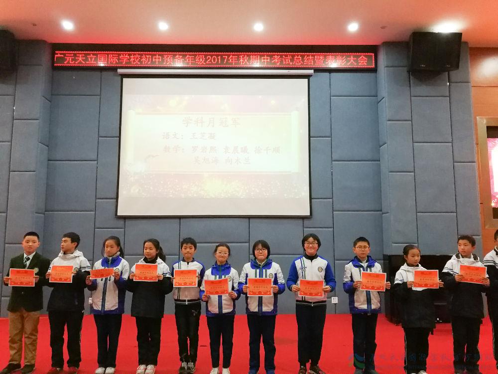 通过本次表彰活动,不仅是对大家工作的一种肯定,更是为预备年级的同学们树立了学习的榜样。极大的鼓舞了同学们的学习的积极性,相信在广元天立国际学校校领导、全体师生、家长的共同努力下,预备学子一定会奋勇拼搏,摘取成功的硕果,创造新的辉煌!