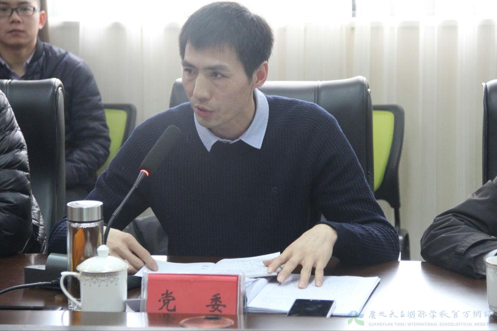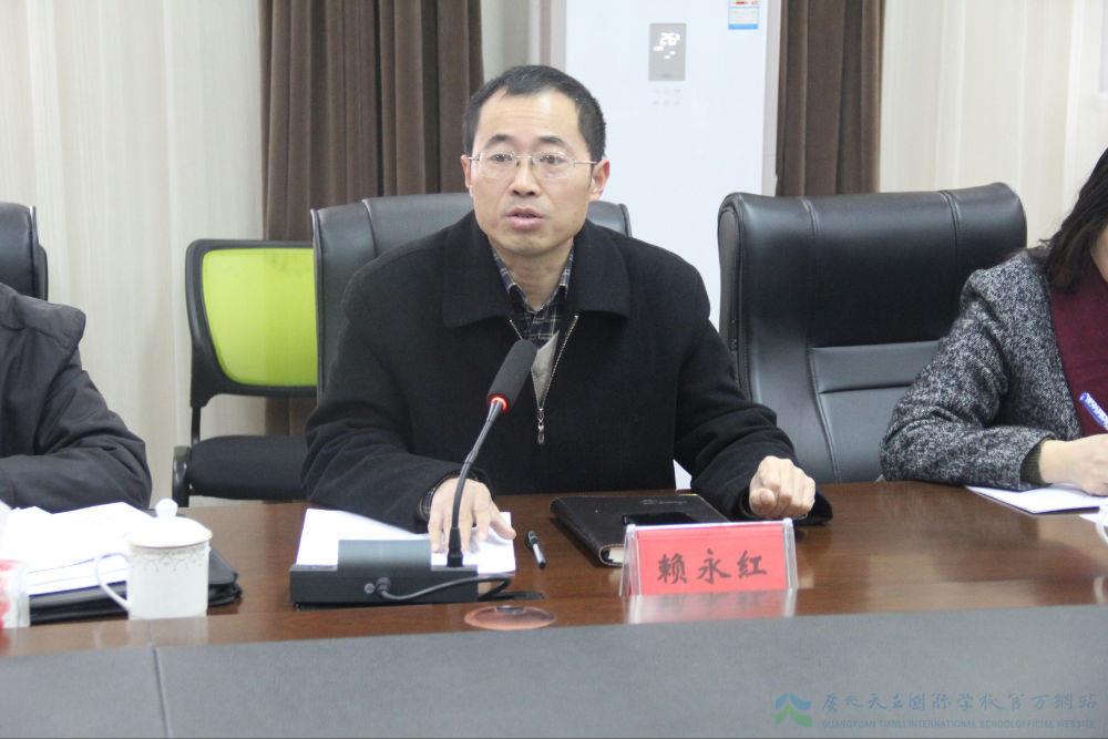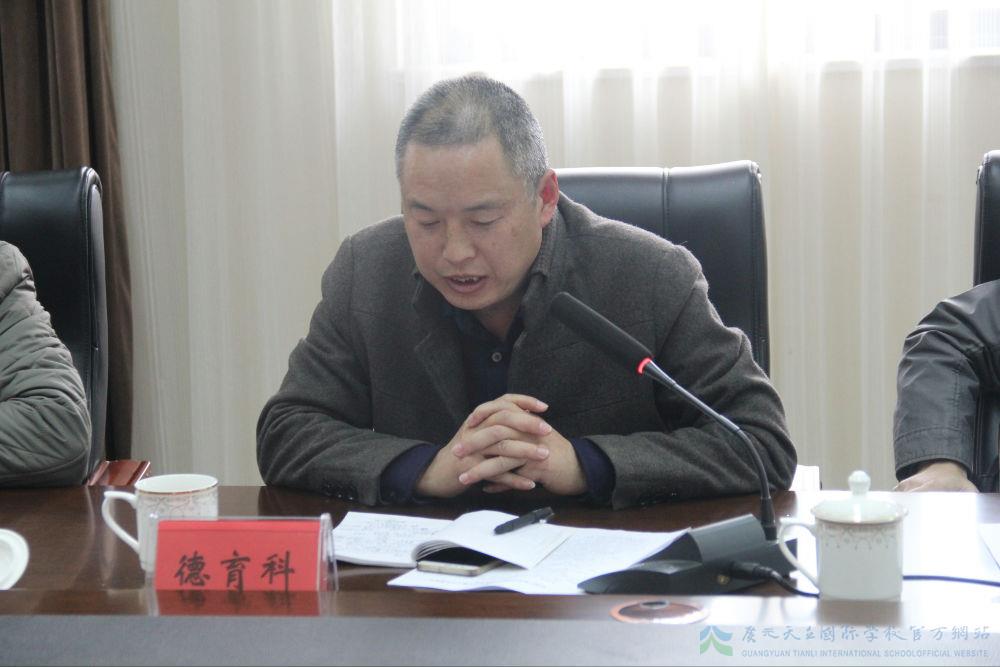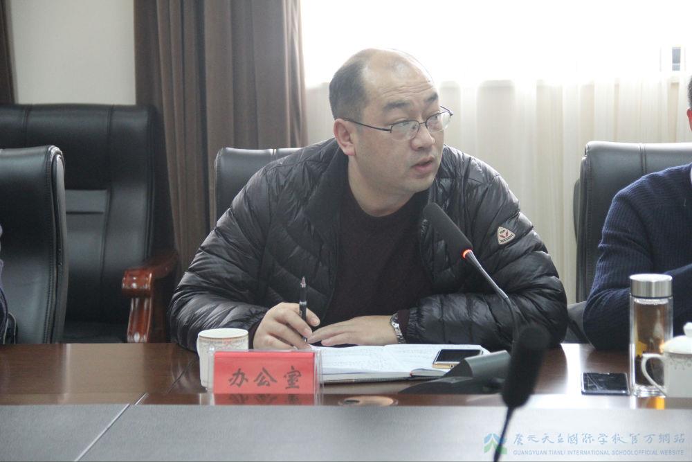 在谈到学校未来发展时,杨局长强调,学校党政一班人要坚定不移地推进学校优质发展、特色发展,向“四川一流”名校快速迈进;要坚定不移地推进学校全面协调发展,向广元成熟名校快速迈进;要更加注重校园文化建设,打造师生共同的精神家园;要更加注重教师队伍建设,打造学校永续发展的核心竞争力;要更加注重管理队伍建设,打造团结、高效、稳定的干部队伍;要坚定不移地推进和实现首届高考“3691”目标,赢得高考开门红;要更加关注师生心理健康和高校自主招生,促进学生多元多维发展。最后,他要求各直属事业单位和科室要坚定不移的支持天立学校的发展,要主动上门服务,并为学校各项工作提供高效指导。他希望学校全体教职工团结一心、艰苦奋斗、创新有为,通过辛勤扎实、科学高效的工作,让更多广元人民的孩子在家门口就能享受到更加优质的教育,为广元教育内涵和持续发展交上满意答卷!