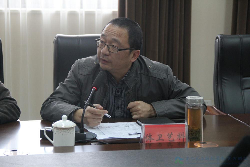 在行政楼二楼会议室,视导组与我校主要行政干部进行了深入座谈。市教育局副局长赖永红主持会议。