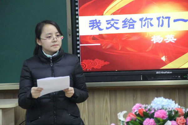 送走班上的孩子和家长,走进504教室,有宾至如归的温暖,不管是鲜花还是瓜果,给班主任们在寒冬里增添了许多温暖。活动开始,伴随着大家的欢笑声,杨英老师声情并茂地献上了张晓风笔下的《我交给你们一个孩子》,初为人母的她,动情更深情。“世界啊,今天早晨,我,一个母亲,向你交出她可爱的小男孩,而你们将还我一个怎样的呢?”