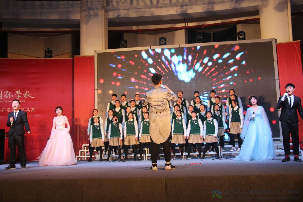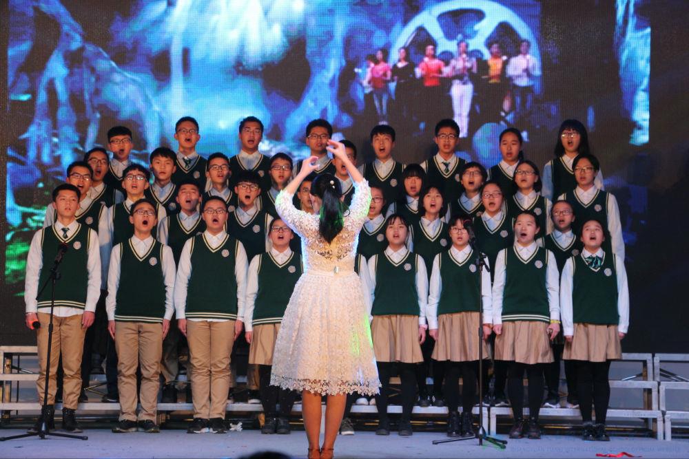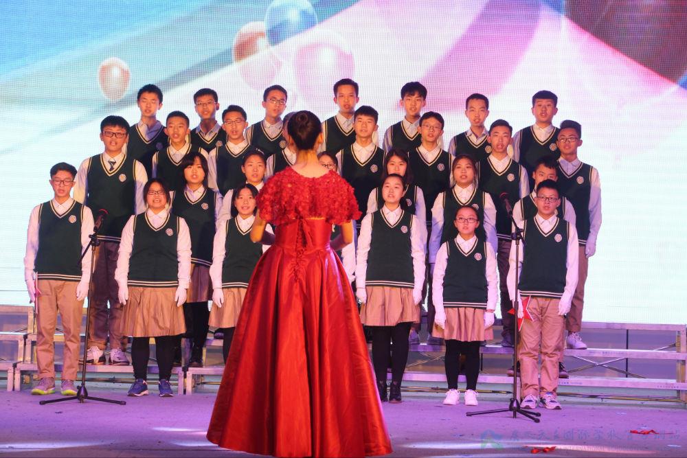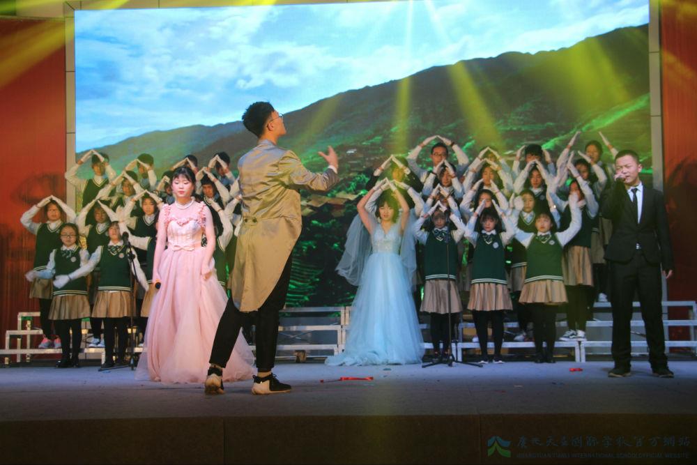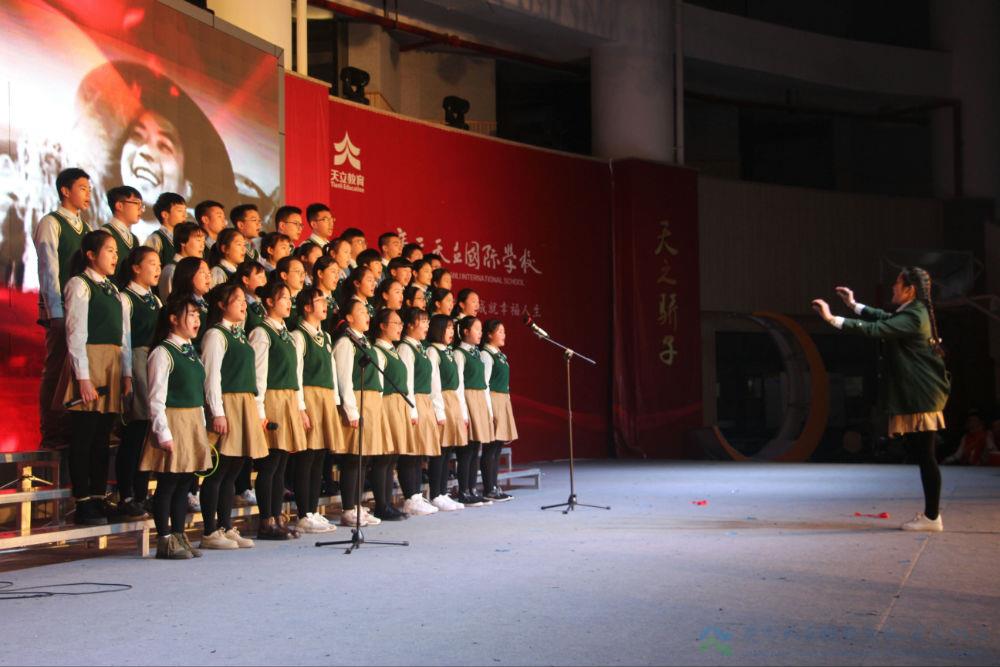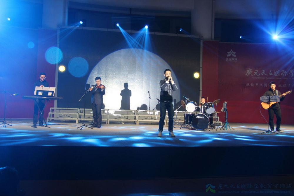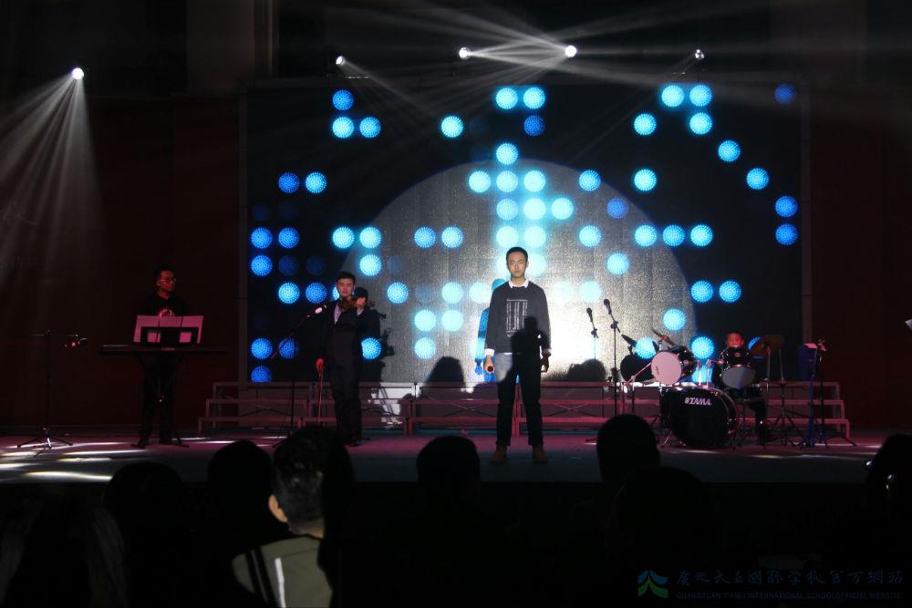 继各班的演绎后,紧接而来的是初中部张耘滔老师的倾情献唱,一曲《爱我中华》,满腹热血柔肠。王晨老师携两位声乐弟子凭一首《长城谣》,诉说了一个动人的故事。王老师以《共圆中国梦》的个人演唱,传达着对天立的期待,对祖国的祝愿。