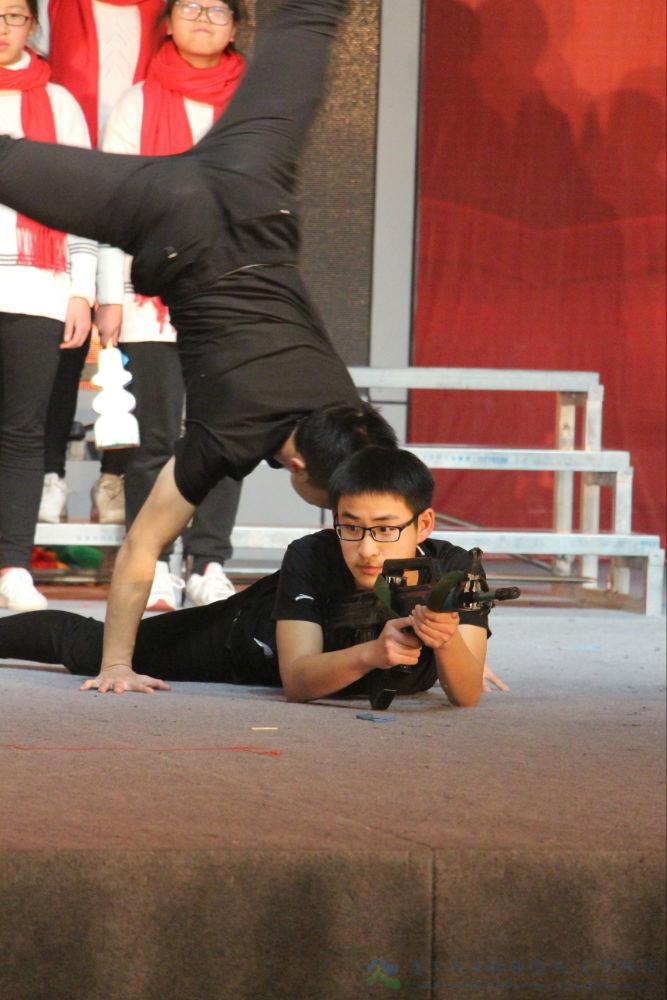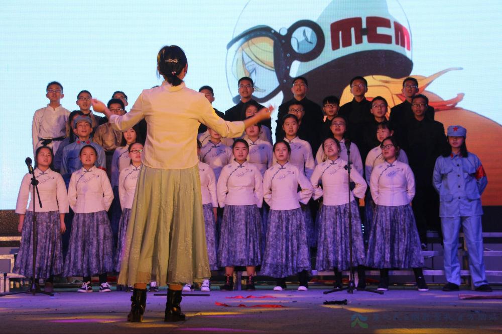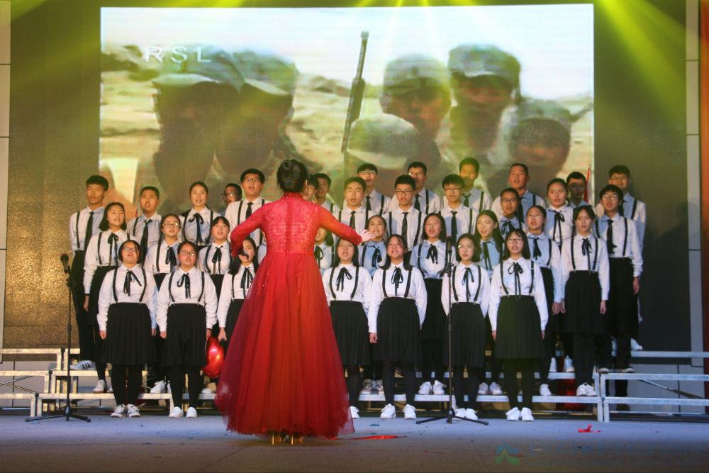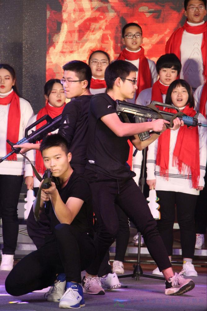 看!每一次演唱以情感与表演相伴,打破了传统模式,演绎着律动青春。歌声洗涤尘埃,澄澈内心。十几岁的年纪,青春正好,他们用质朴的歌声颂扬着对祖国的爱与期待。为了彰显自己的特色,各班有意在演唱中穿插了其他元素,纷繁了整个活动。身着迷彩,拳攥力量,他们用豪情书写着真正男儿的模样;诗写未来,星耀华夏,他们以自创表现着与他人不同的平凡;手持枪杆,一身戎装,他们用热血创造着奇迹的发生;剧忆历史,舞跃青春,他们以创意感动着在场的师生……他们身着时代服装,把道具、情景搬上舞台,为歌唱本身增色不少,让这场比赛变成了诚心实意的集体展示。