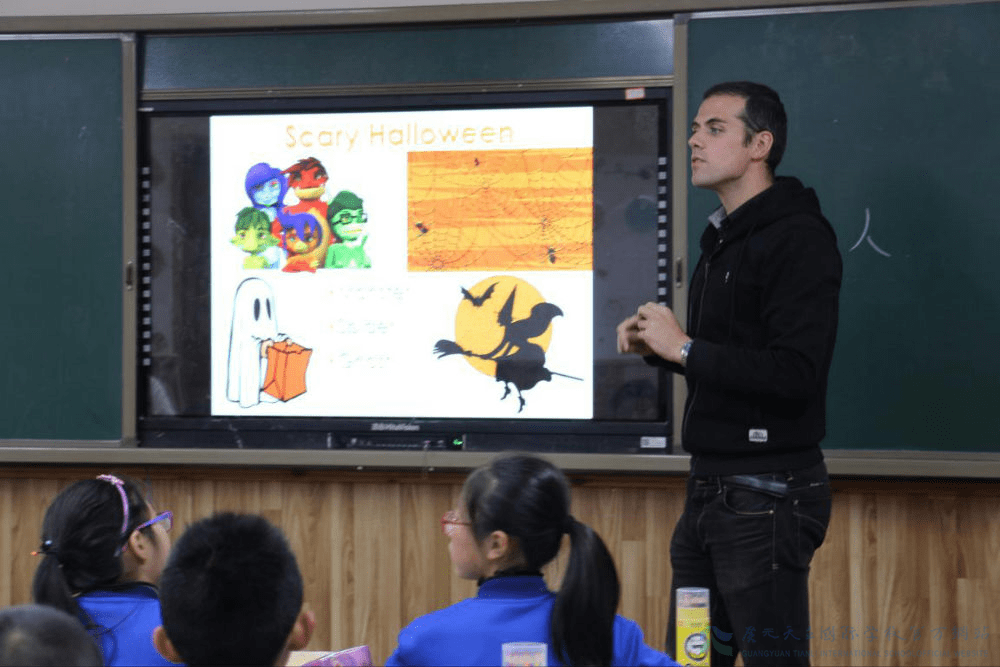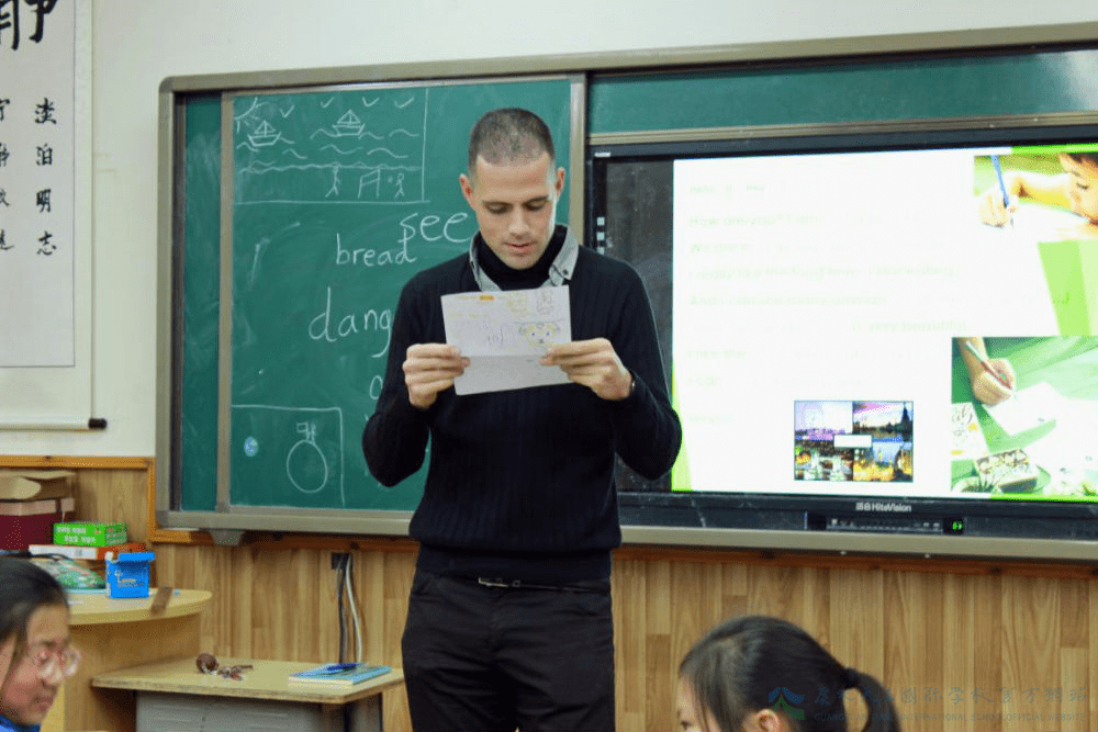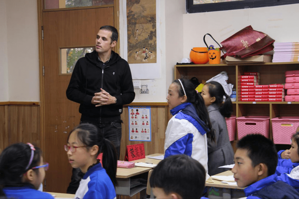 首先要介绍下今天的主角:Mattias老师是比利时人,毕业于根特大学,世界上100所最好的大学之一。历史学、科学双硕士学位,会讲英语、荷兰语、法语,懂德语。在中国从事外语教学工作6年,英语人才大赛评委,英语风采大赛优秀指导教师。听完外教的介绍,同学们的嘴巴一致成O形,露出羡慕的眼光。