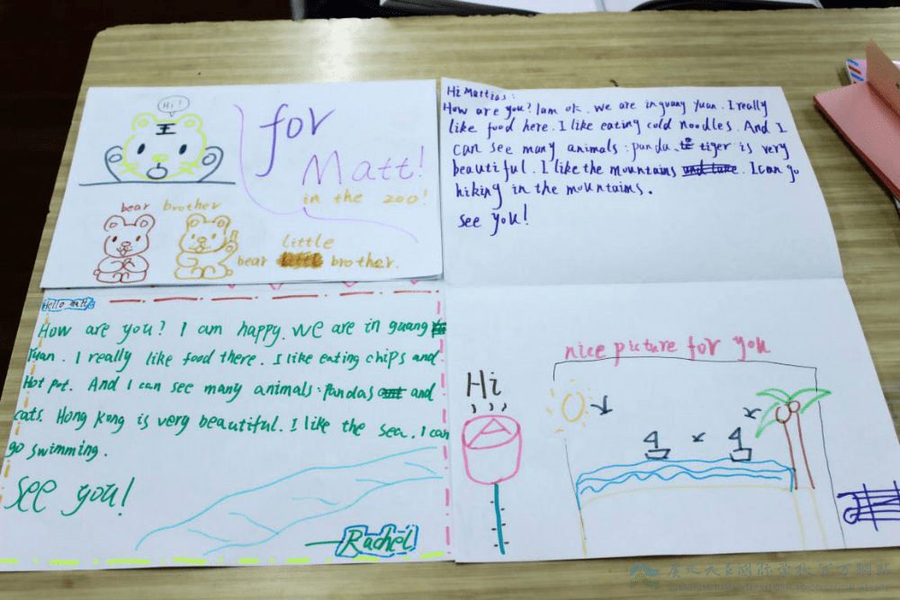 瞧瞧我们上课的笔记,亲手制作的手绘英文明信片,感觉还不错吧!