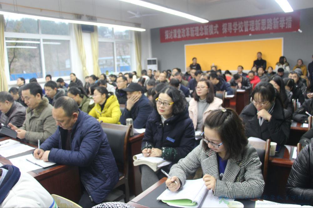寒冬季,暖暂歇,天立喜来客。12月13日,广元市2018届高三化学复习教学研讨会在我校隆重举行。市教研员梁树超老师组织四县三区高三化学老师参与研讨,市教科所副所长赵怀广老师莅临现场,市内教师代表相继带来精彩课堂及讲座分享。本次研讨会特邀省教科所化学教研员马红艳老师举行专题讲座,为高三化学复习提出了建设性意见。黄永贵总校长代表我校全体师生,对与会的领导及老师表达了最诚挚的欢迎。