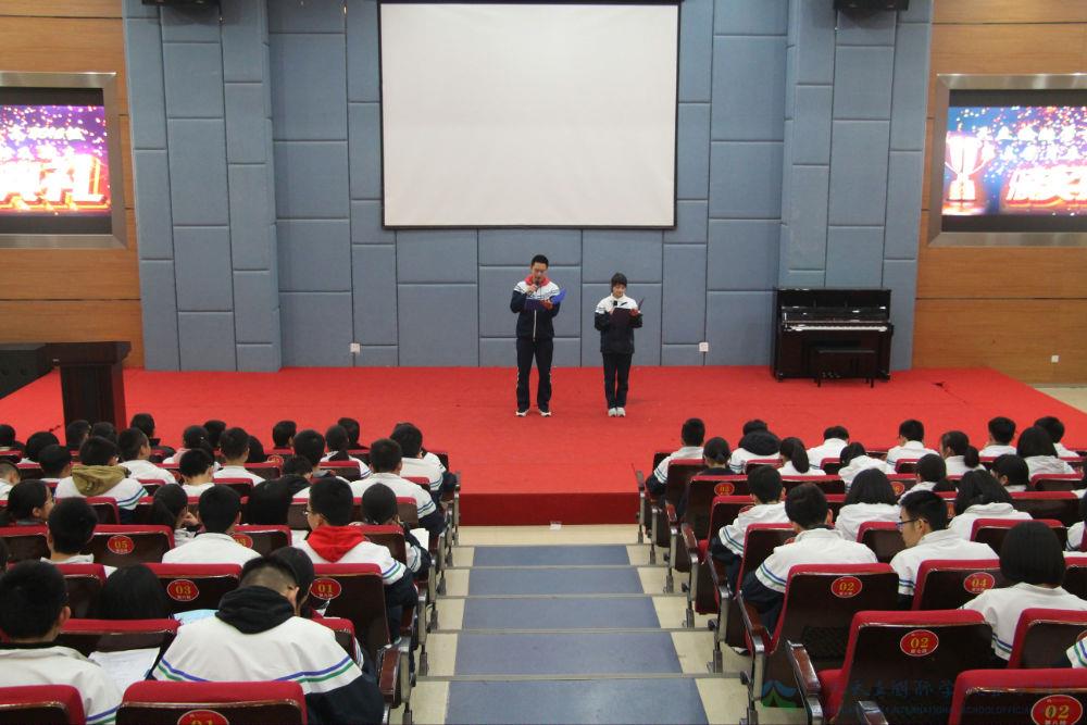 日暖冬深,时光恰好;青春无悔,风华正茂。12月26日晚,我校高中部高二年级2017年秋第三学月表彰暨期末动员大会在学术厅隆重举行,学校副校长兼高二年级主任韩顶清老师携高二师生集体与会。大会由高二(1)班吴佳豪与高二(7)班李姝主持,最终盛大落幕。
