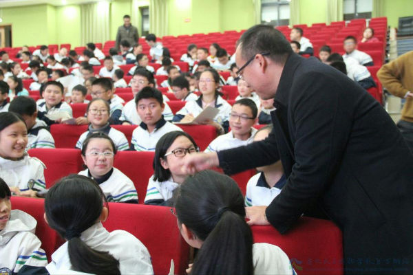 是的,学校薛述容书记走进我们初二年级,给我们带来了一场别开生面的青春期心理辅导课。这不是一场普通的干瘪的青春期讲座,其实在之前我早做好了进入讲座就做作业的打算,可是薛老师却不像大学校园里的老教授,优雅得体的站在报告厅中间,开场一首音乐就勾走了我想要写作业的心。“哼,我就在青春期,看你有什么绝招。”这当真不是讲座,反而更像整个年级在一起做游戏。薛老师让我们互相拍拍对方的肩膀,再熟悉不过的拍掌今晚却被施了魔法。我们接力一般拍击着对方的肩膀,当其他同学将力量附着在我背上之时,仿佛在对我说,“加油,你真棒”。回望整个会场,期中考试之后的阴霾都消散了,绽开了灿烂的笑脸;是吧,老师你上次也夸我思维活跃;还有你夸我沉着稳重。一时间,脑海中涌现出无数个“我很棒”的画面。
